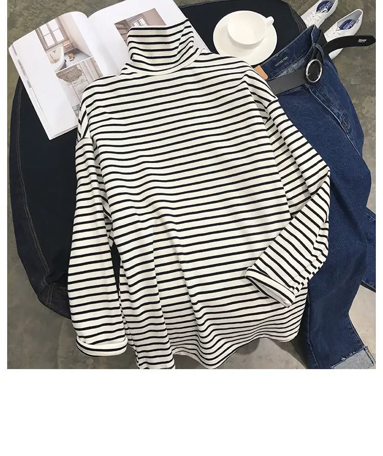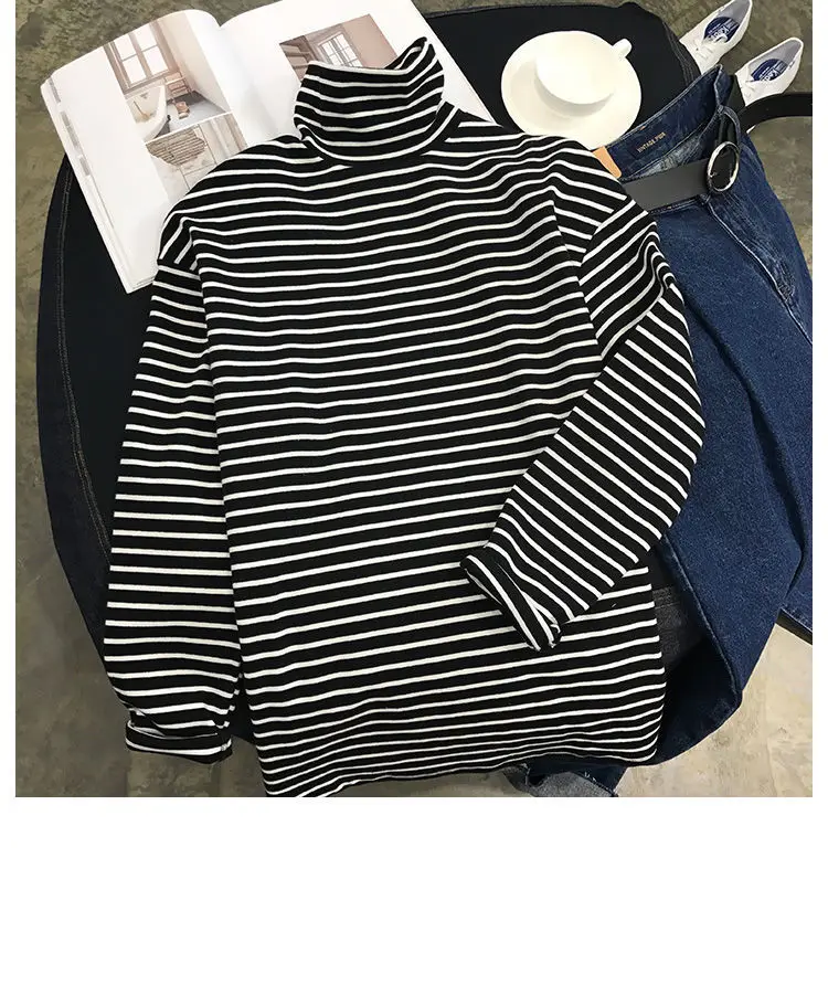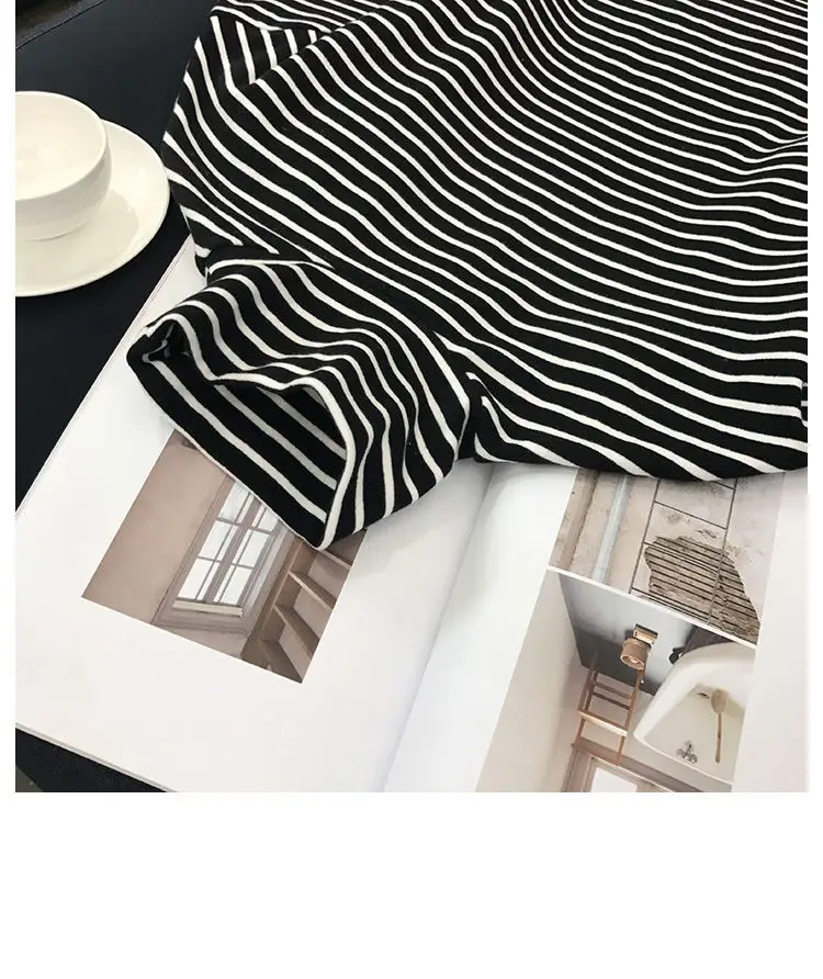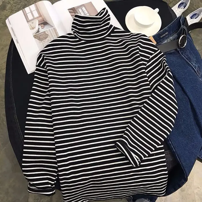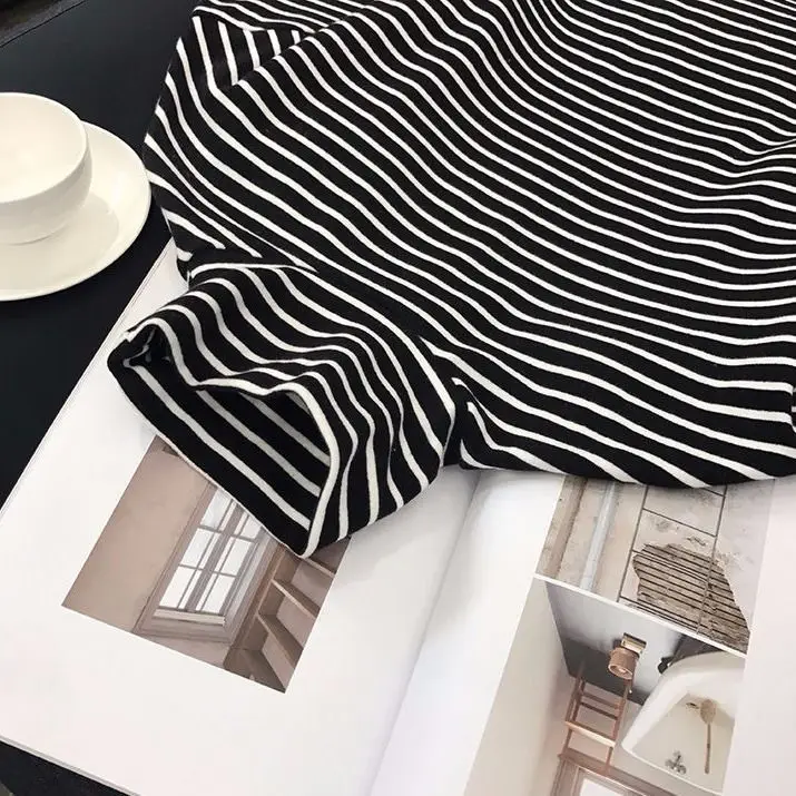 Женская Полосатая водолазка, осенне-зимняя футболка с длинным рукавом, укороченный топ