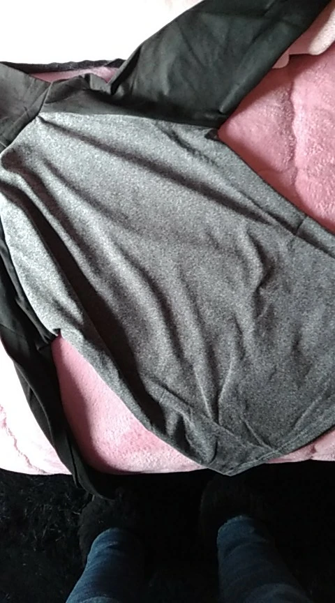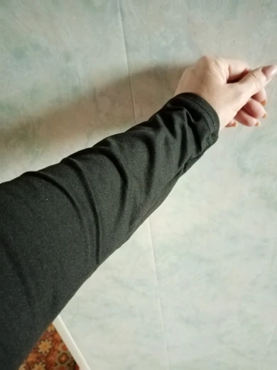 Хороший трикотаж, приятный, в меру теплый, подойдёт на осень и для помещений где не дует. у меня размер М, русский 42. Сначала было очень туго но через 2 дня носки вещь растянулась. После недели эксплуатации, нитки из рукава стали вылазить, но можно подшить, ничего страшного