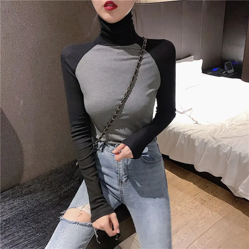 Женская водолазка, с длинным рукавом, обтягивающий воротник
