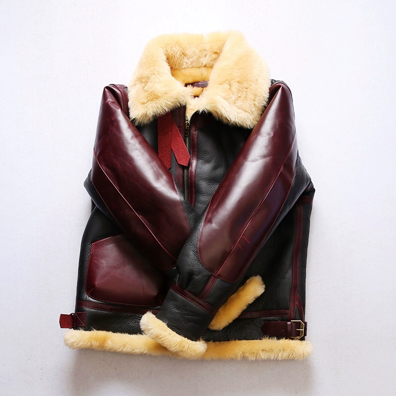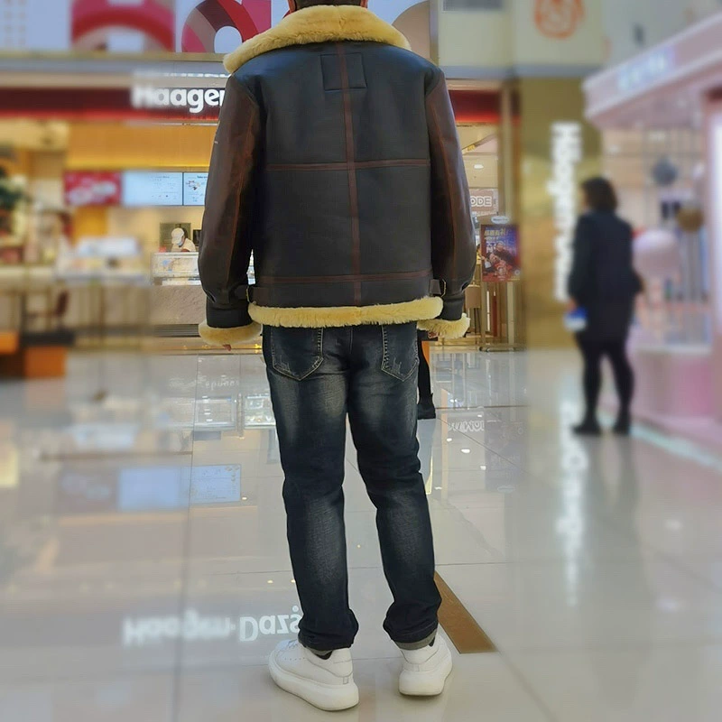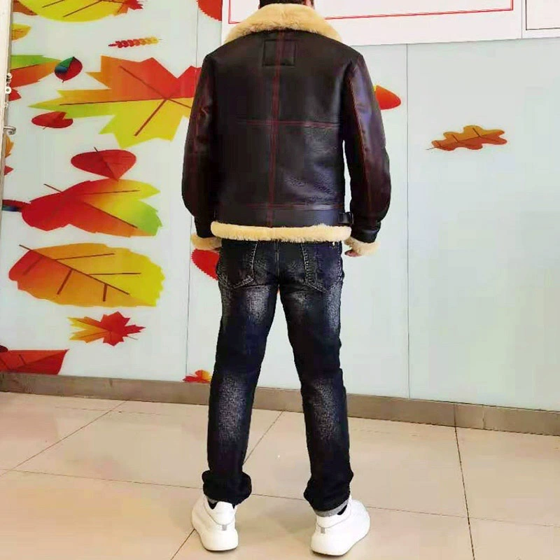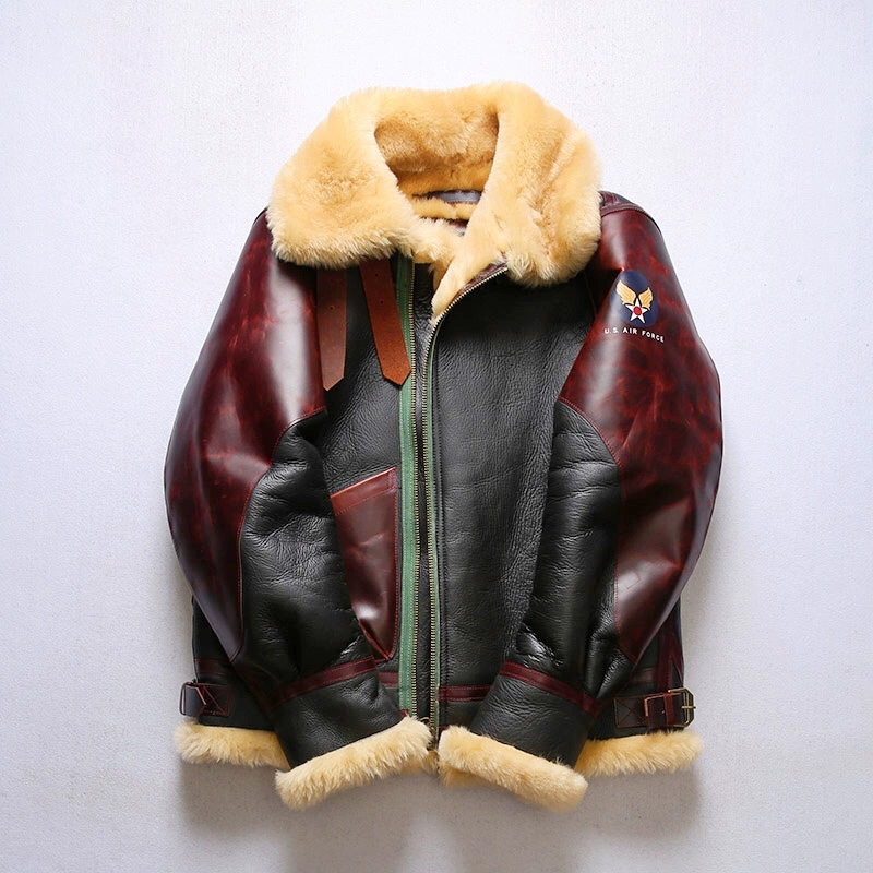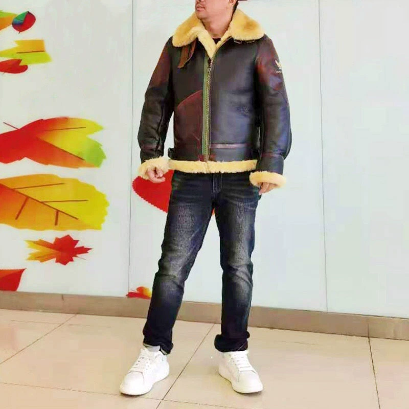 Мужское пальто из натуральной овечьей кожи AVB3, теплая куртка-бомбер из овчины в стиле милитари, большие размеры в европейском и американском стиле
