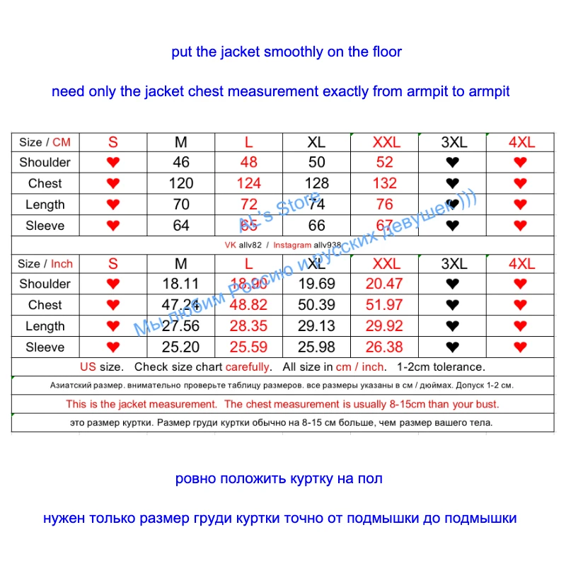 Пожалуйста, измерьте свои Куртки ниже: