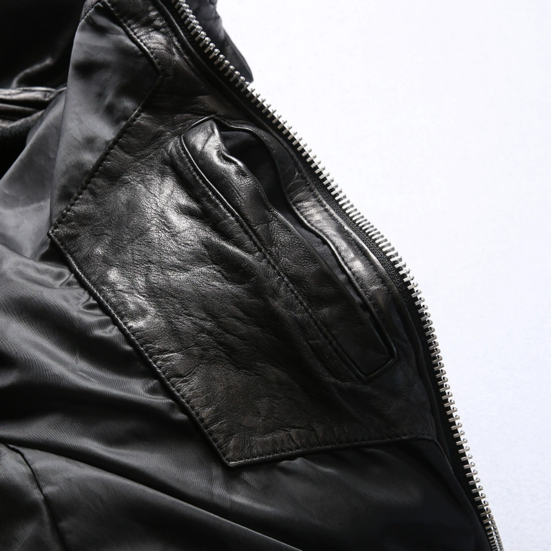 Куртка-бомбер мужская из натуральной овечьей кожи, в стиле милитари...