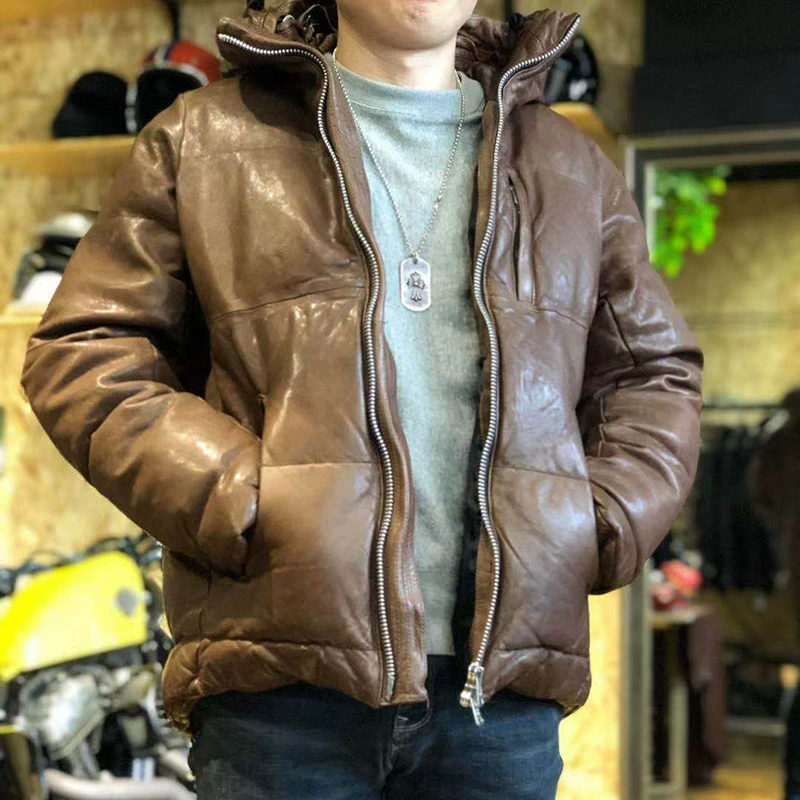 Мужской пуховик из натуральной козьей кожи, очень теплый, зимний, 2112