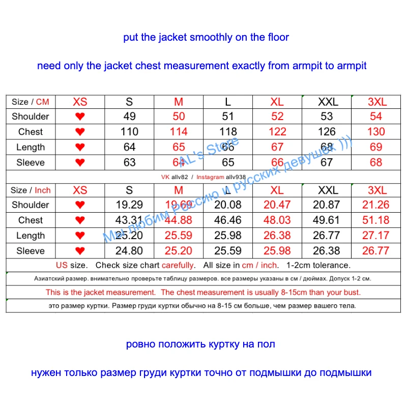 Пожалуйста, измерьте свои Куртки ниже: