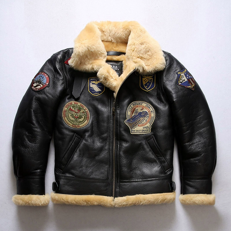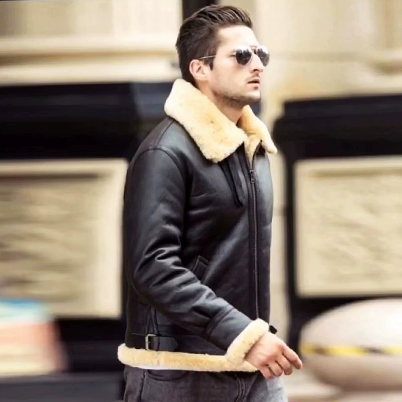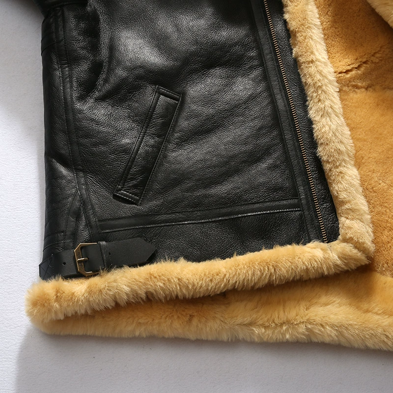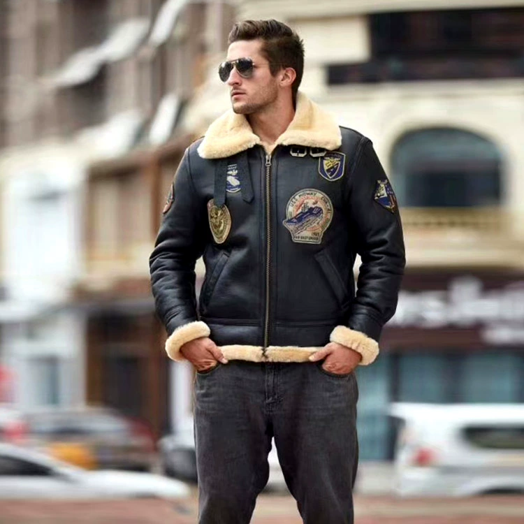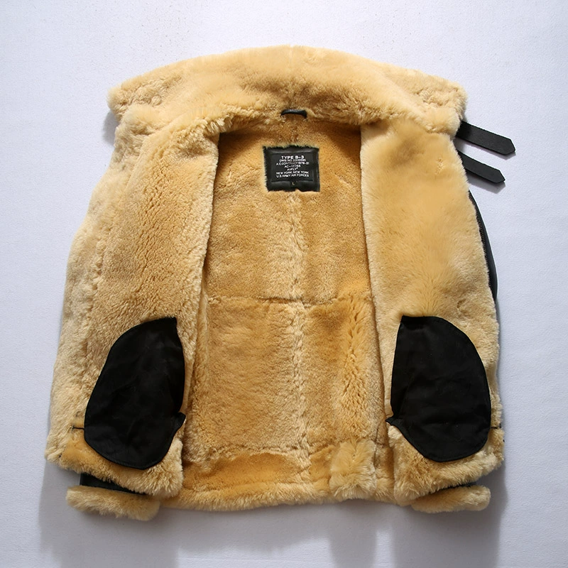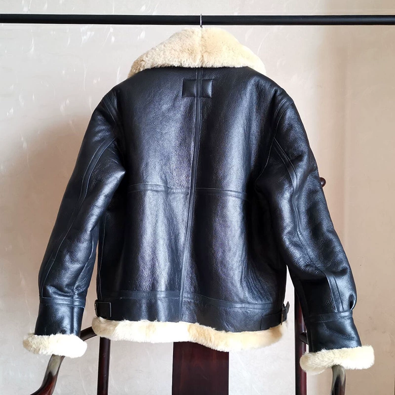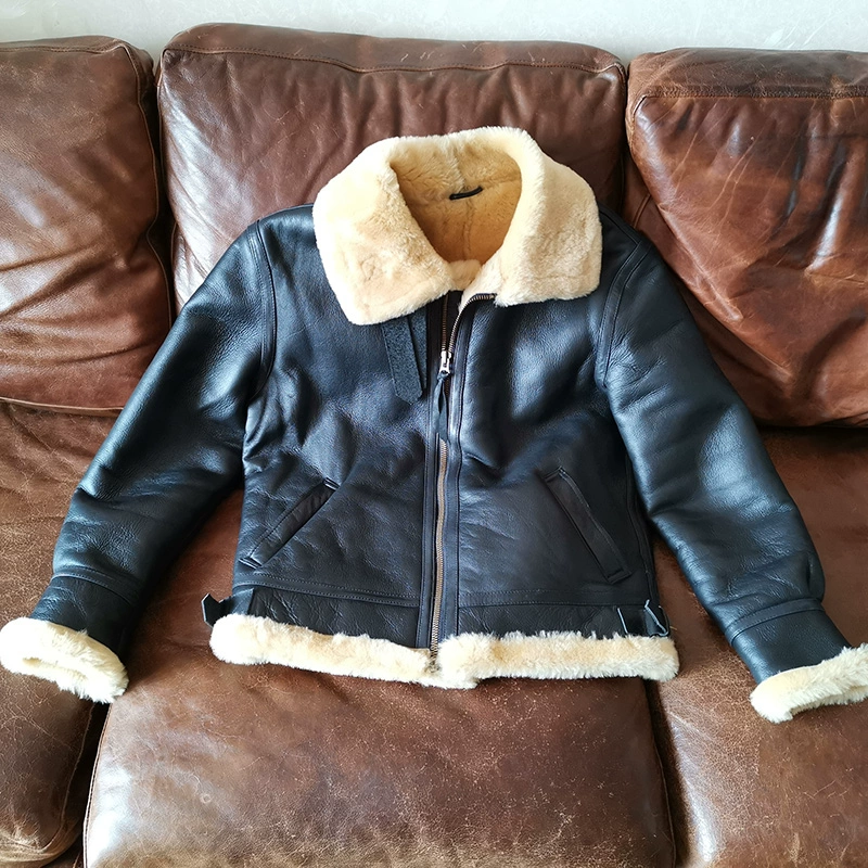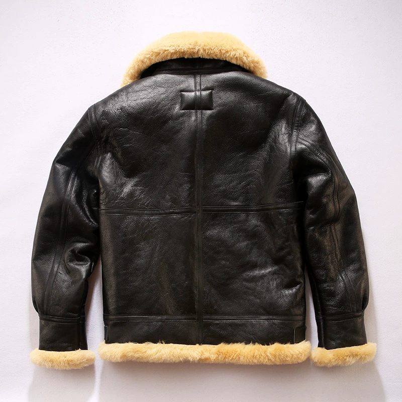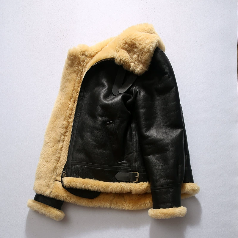 Мужское пальто из натуральной овечьей кожи DBB3, теплая куртка-бомбер из овчины в стиле милитари, большие размеры B3, европейские и американские размеры