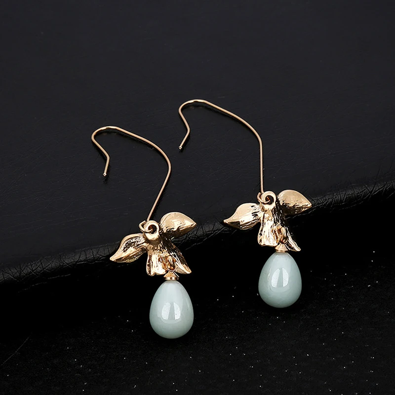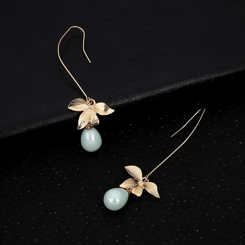 Женские серьги с цветком орхидеи, шалфеем, зелеными жемчужинами, крючком, висячие серьги, свадебные украшения