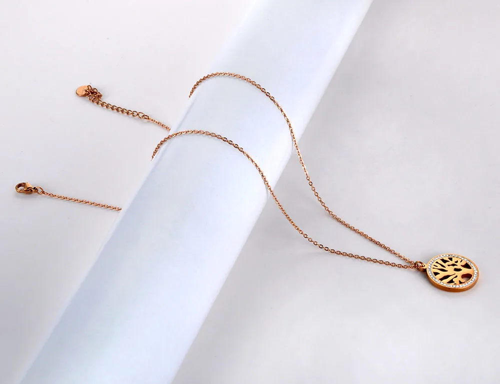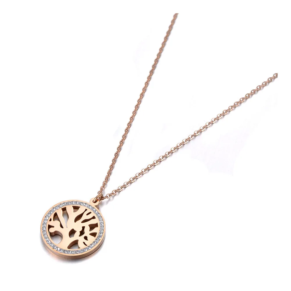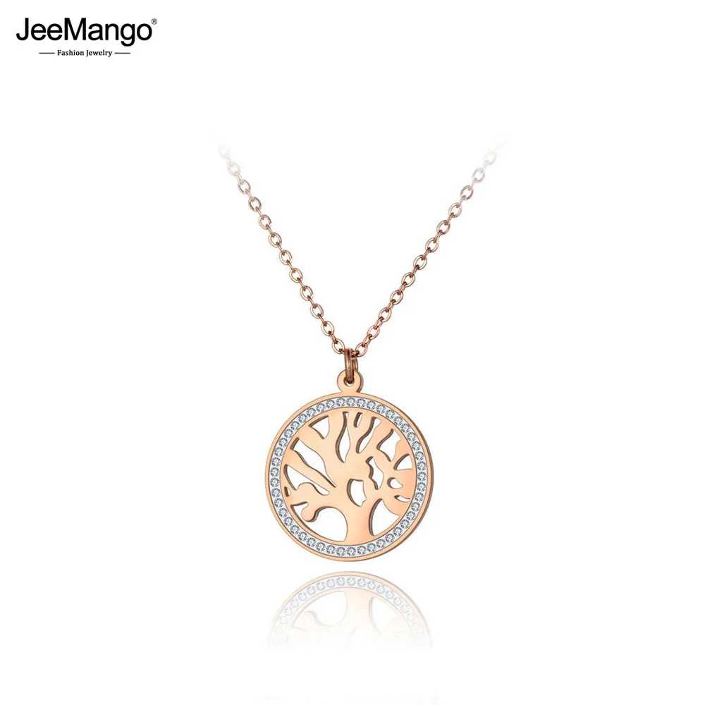 JeeMango богемный Титан Нержавеющая сталь CZ кристалл дерево чокер ожерелье для женщин новый очаровательный кулон ожерелье ювелирные изделия JN19193
