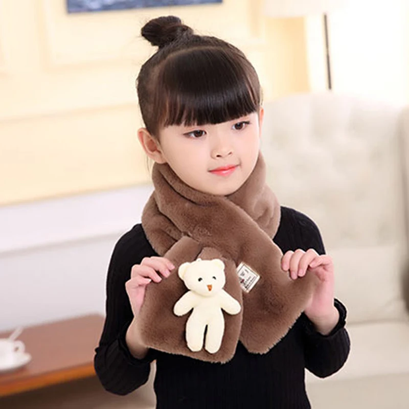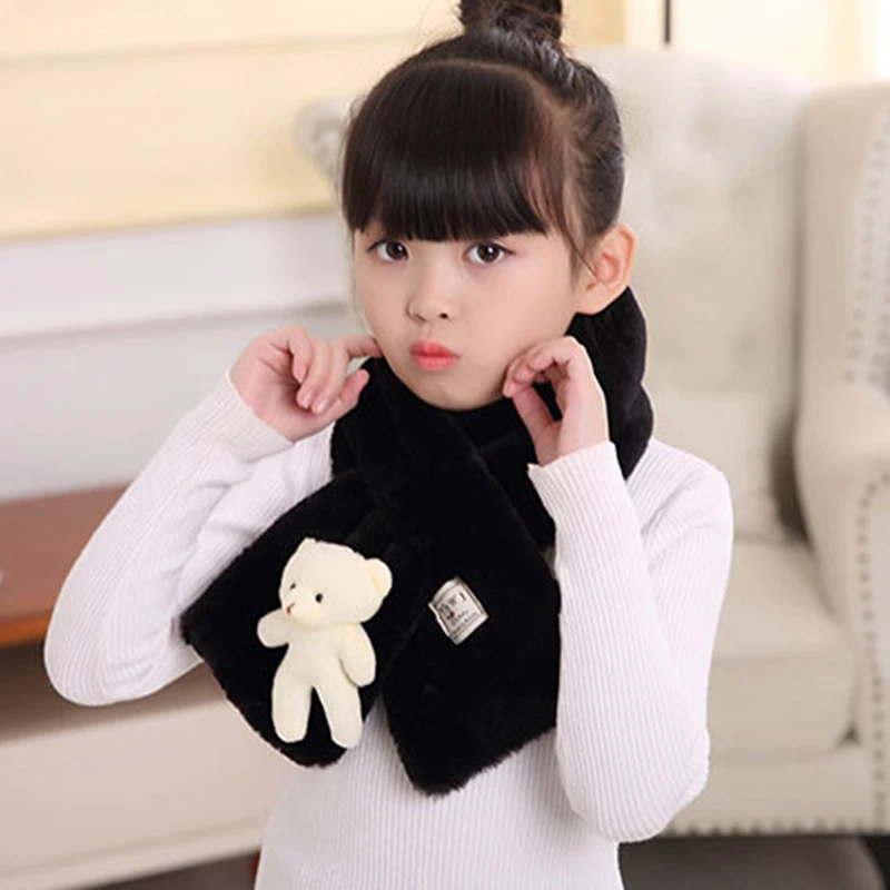 Осень-зима Новый искусственную кроличью шерсть; Детский шарф для маленьких мальчиков и девочек плюшевый медвежонок шеи теплые шарфы Однотонная одежда