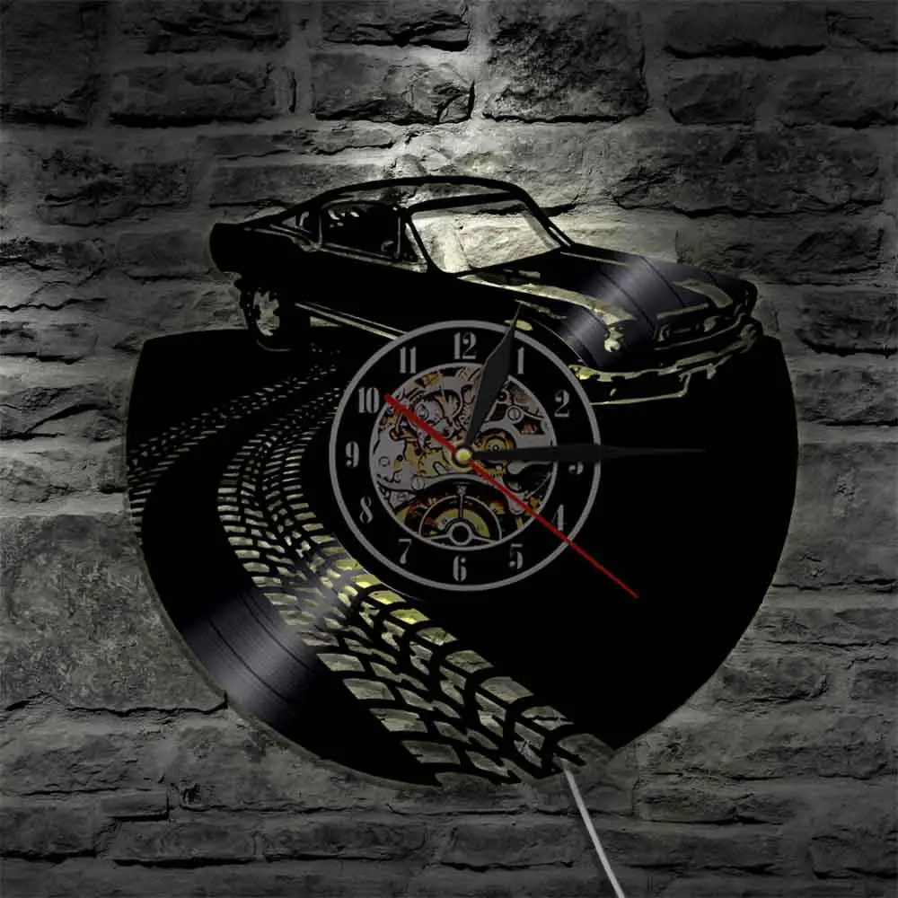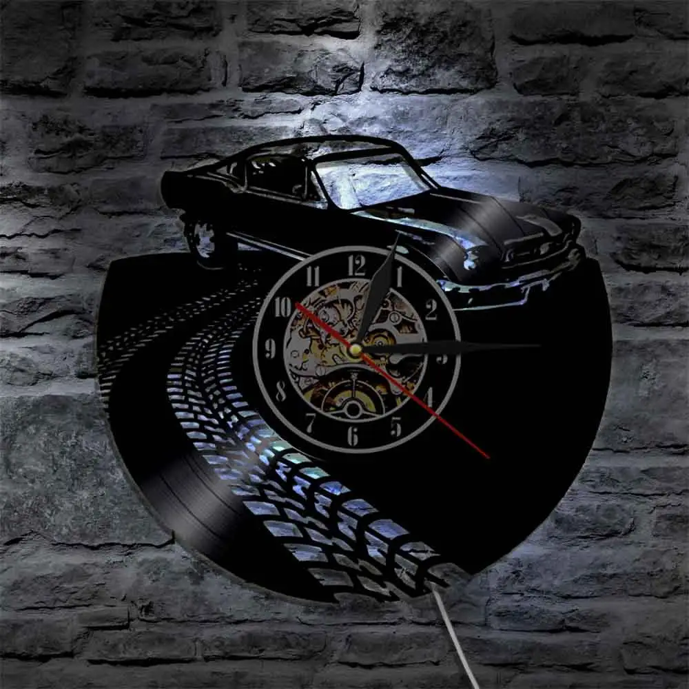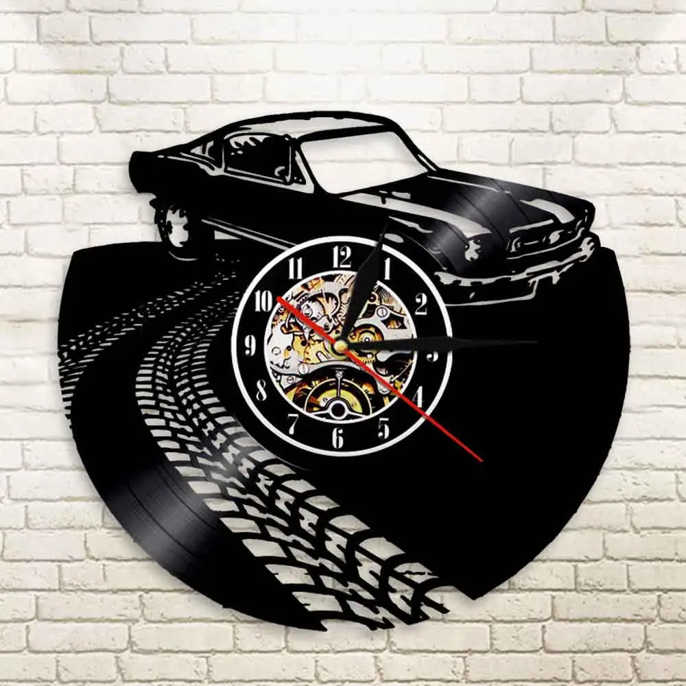 Классические винтажные настенные часы в стиле ретро с дорожным знаком, спортивные автомобили, гоночный автомобиль, виниловая пластина, настенные часы, подарок для любителей автомобиля