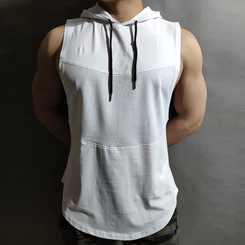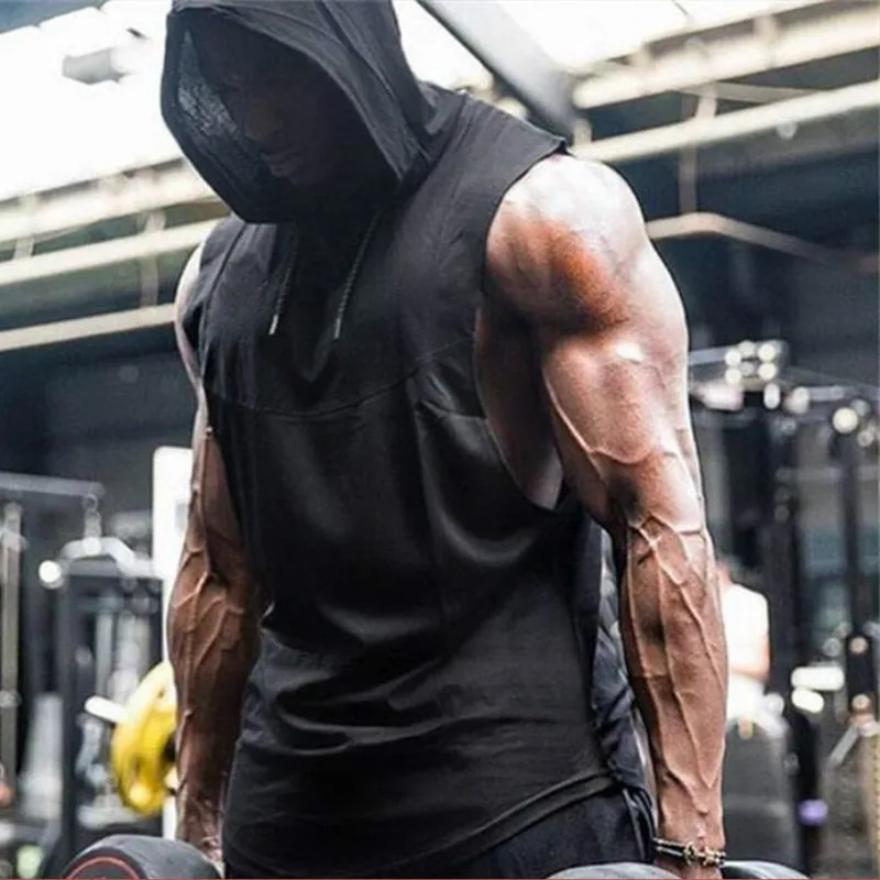 Кроп-топ мужской с капюшоном, майка для спортзала, майка для тренировок в стиле хип-хоп, одежда для фитнеса и воркаута