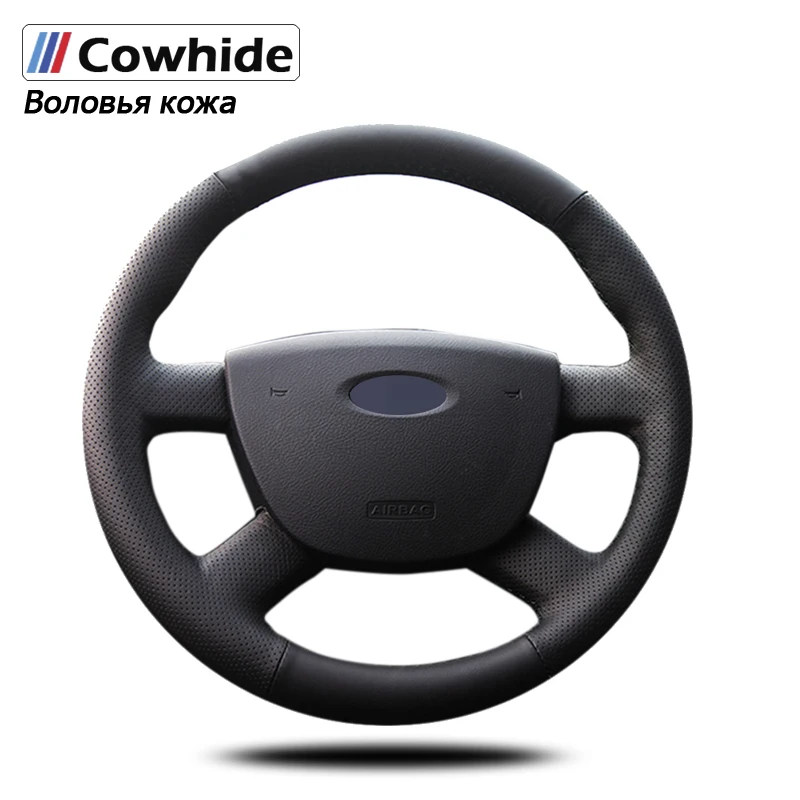 Черные чехлы на руль из натуральной кожи ручной работы для Ford Focus 2 2005-2011