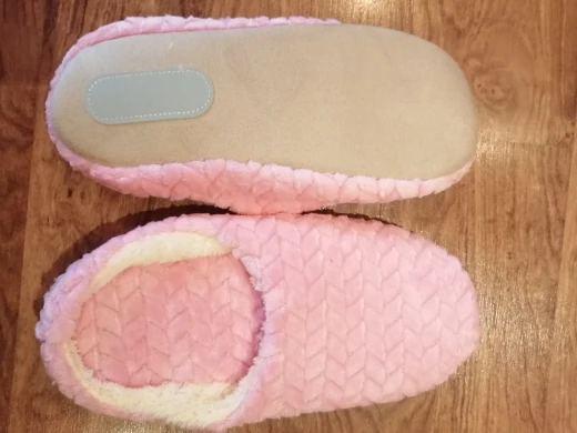 Тапочки очень удобные и удобные. Это был первый раз в моей жизни, и мне 65 лет! Что я пробовал открытый каблук. Это не для меня. Я не могу ходить больше, чем 2 фута, не разбиваясь снаружи тапочек, я выгляжу как утка, стараясь ходить в первый раз. К сожалению, для всех, кто может ходить в таком виде обуви, вы будете очень довольны вашим выбором. Я купил фиолетовый и цвет приятный и мягкий. Быстрая доставка тоже!
