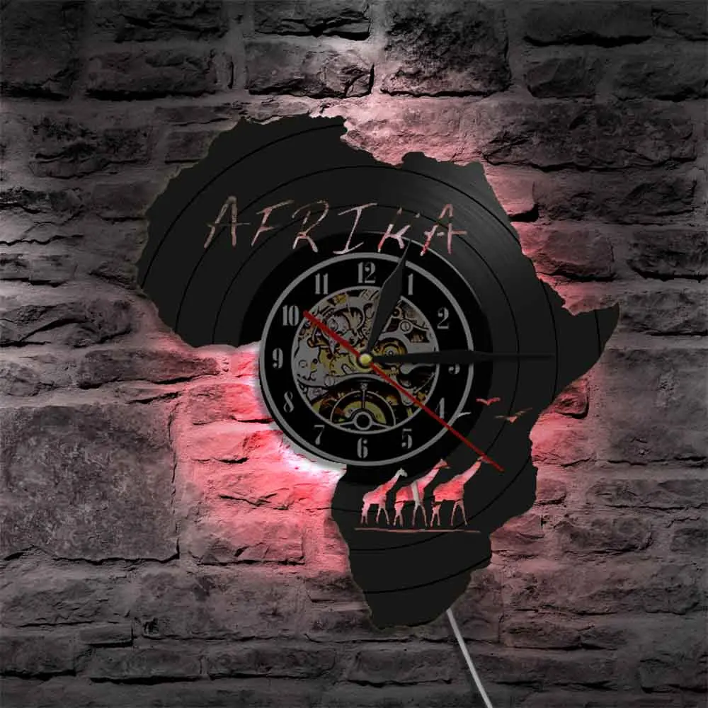 Настенные виниловые часы с африканскими животными, дикой природой, жирафом, Настенный декор для детской комнаты, виниловые часы с записью времени, уникальный подарок