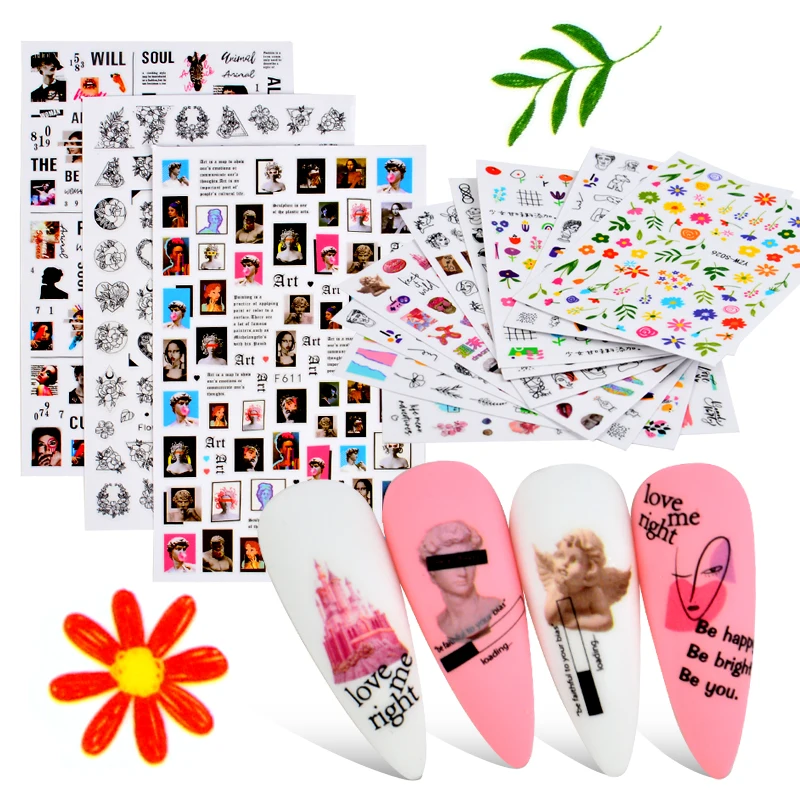 3D наклейки для ногтей, фигурка женщины, узор для лица, специальная переводная картинка, цветы, слайдеры, наклейки, украшения для ногтей