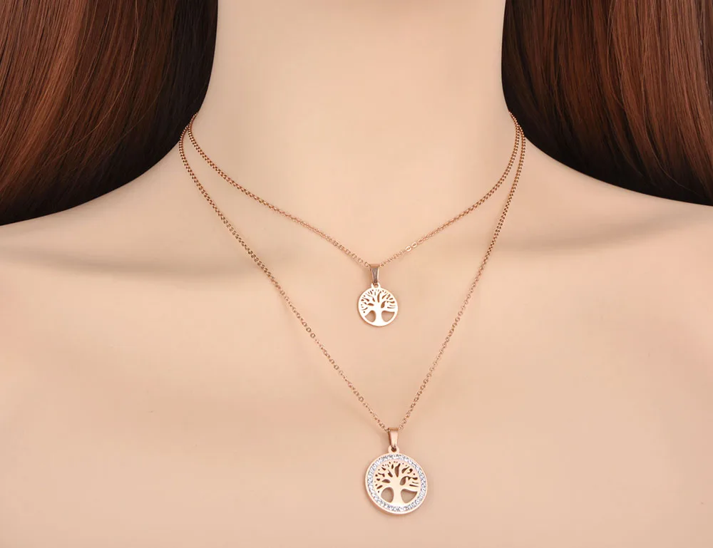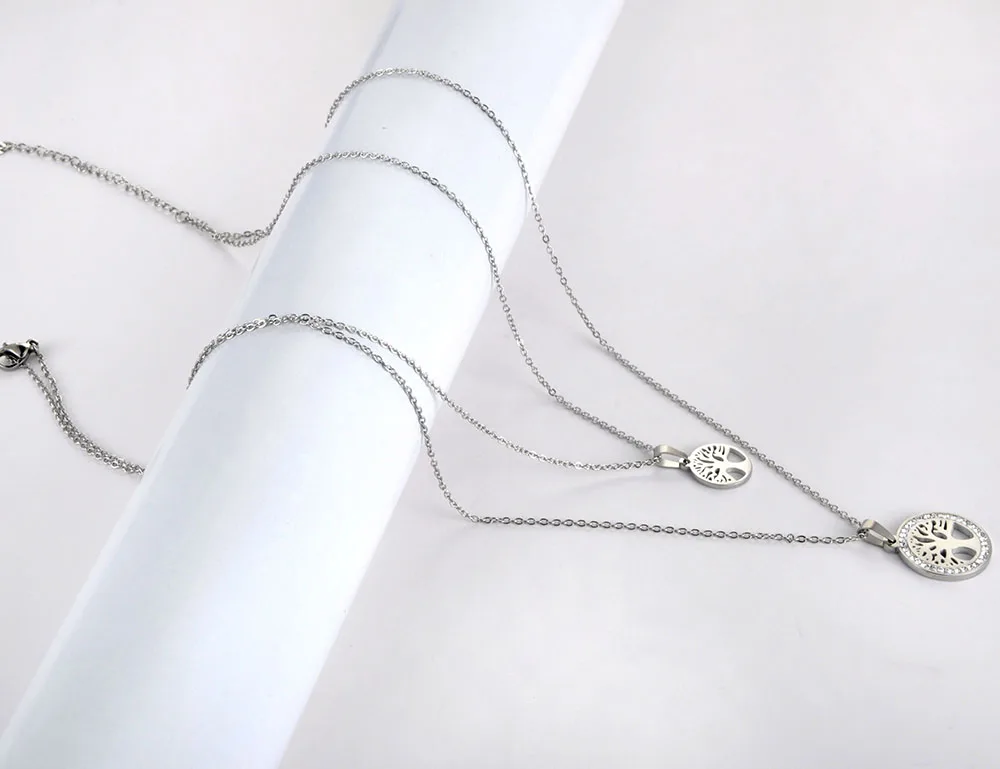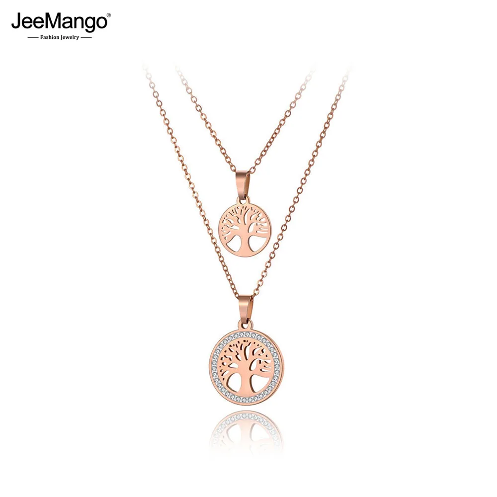 JeeMango в богемном стиле Стиль нержавеющая сталь двухслойные Кристальные серьги-древо жизни колье ожерелье кулон на пляж ожерелье для женщин JN19215