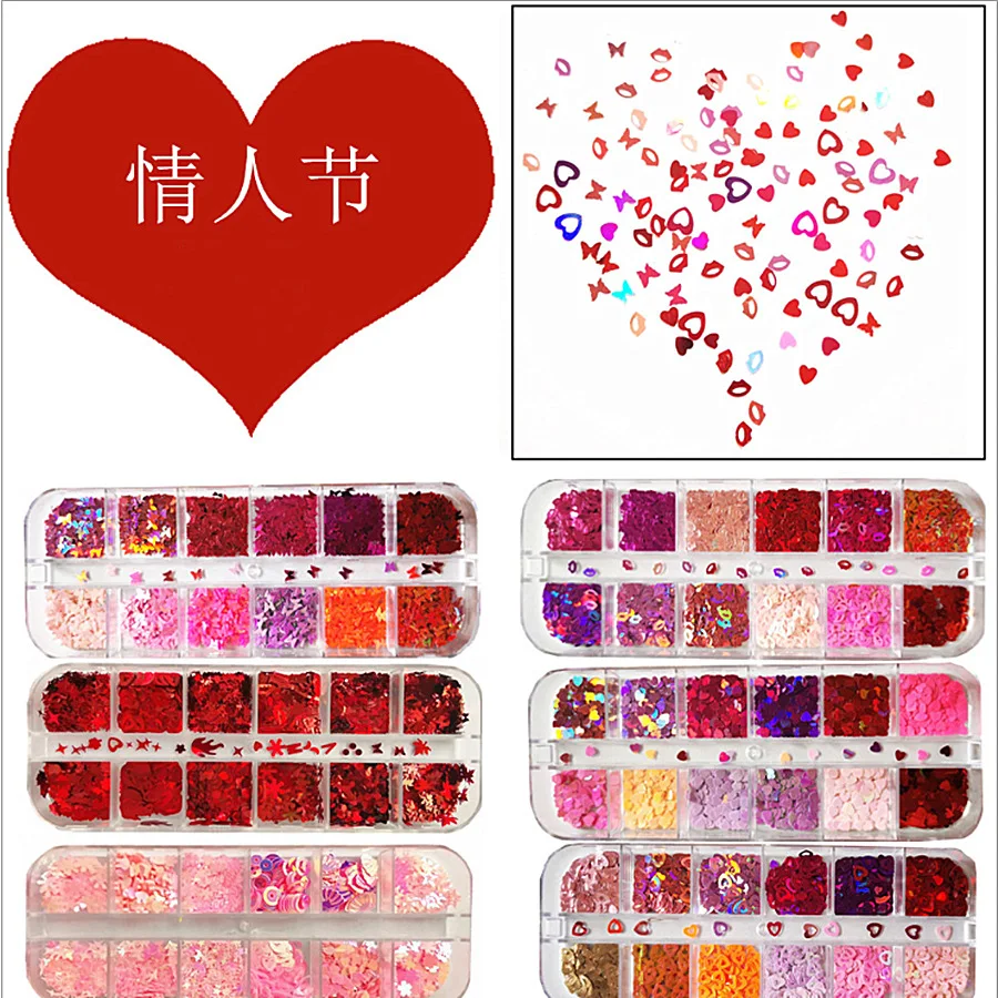 Блестки для маникюра, ноготь маникюрный-разные размеры блесток, 12 сетокнабор