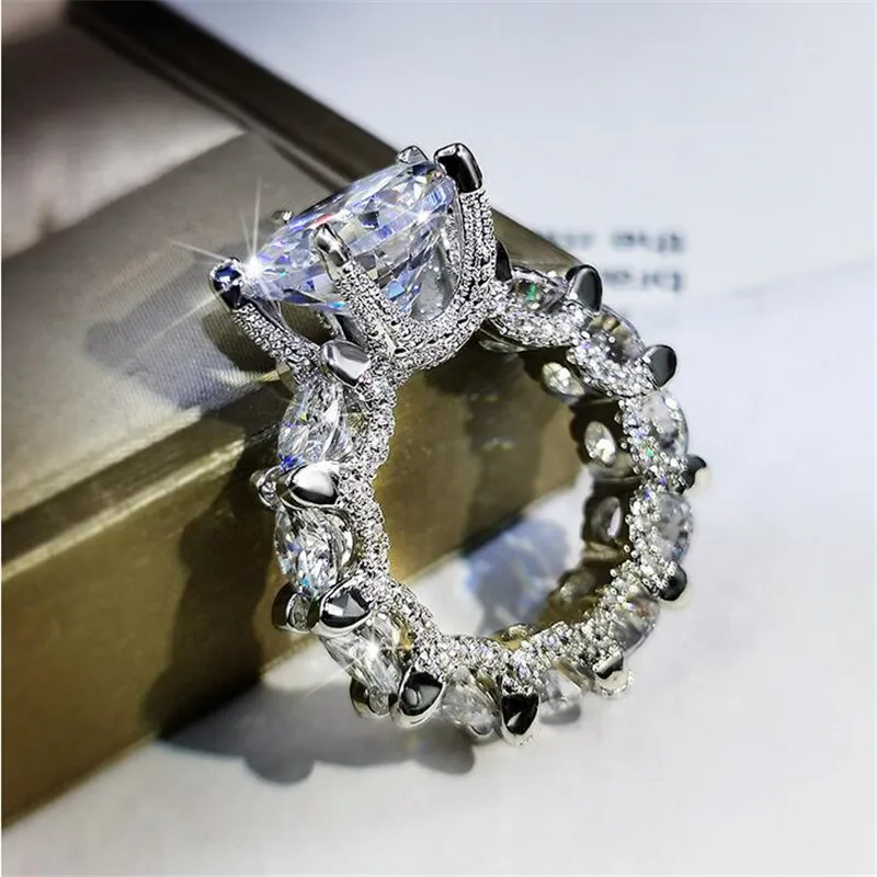 Новинка Роскошные ювелирные изделия для коктейля из серебра 925 пробы с крупным круглым вырезом, белый топаз, CZ Бриллиант, Женское Обручальное Кольцо