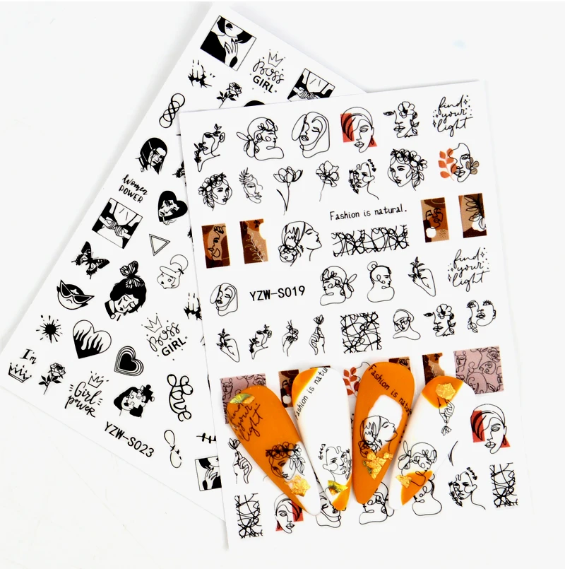 2022 новый стикер для ногтей женский эскиз лица абстрактное изображ...