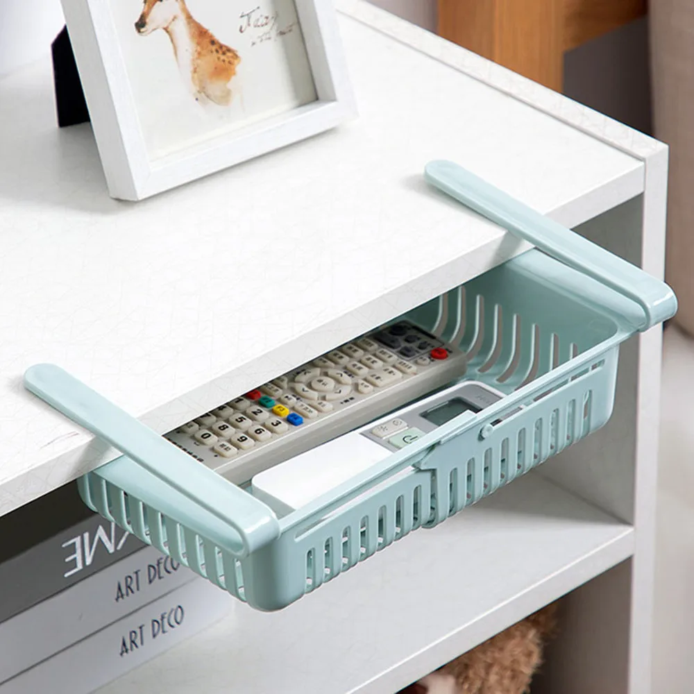 【Space saver】подвесная полка холодильника может использоваться не только в холодильнике и морозильной камере, чтобы максимизировать полезность холодильника и морозильной камеры, но также может быть закреплена под столом для размещения небольших предметов для поддержания их упорядоченности.