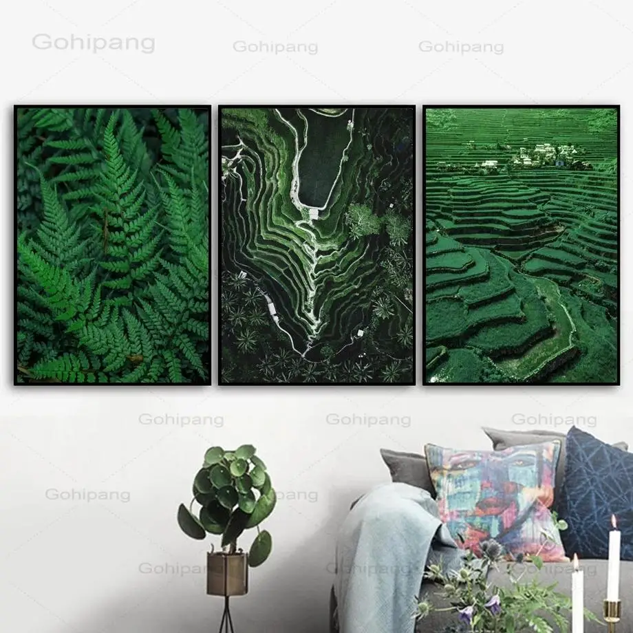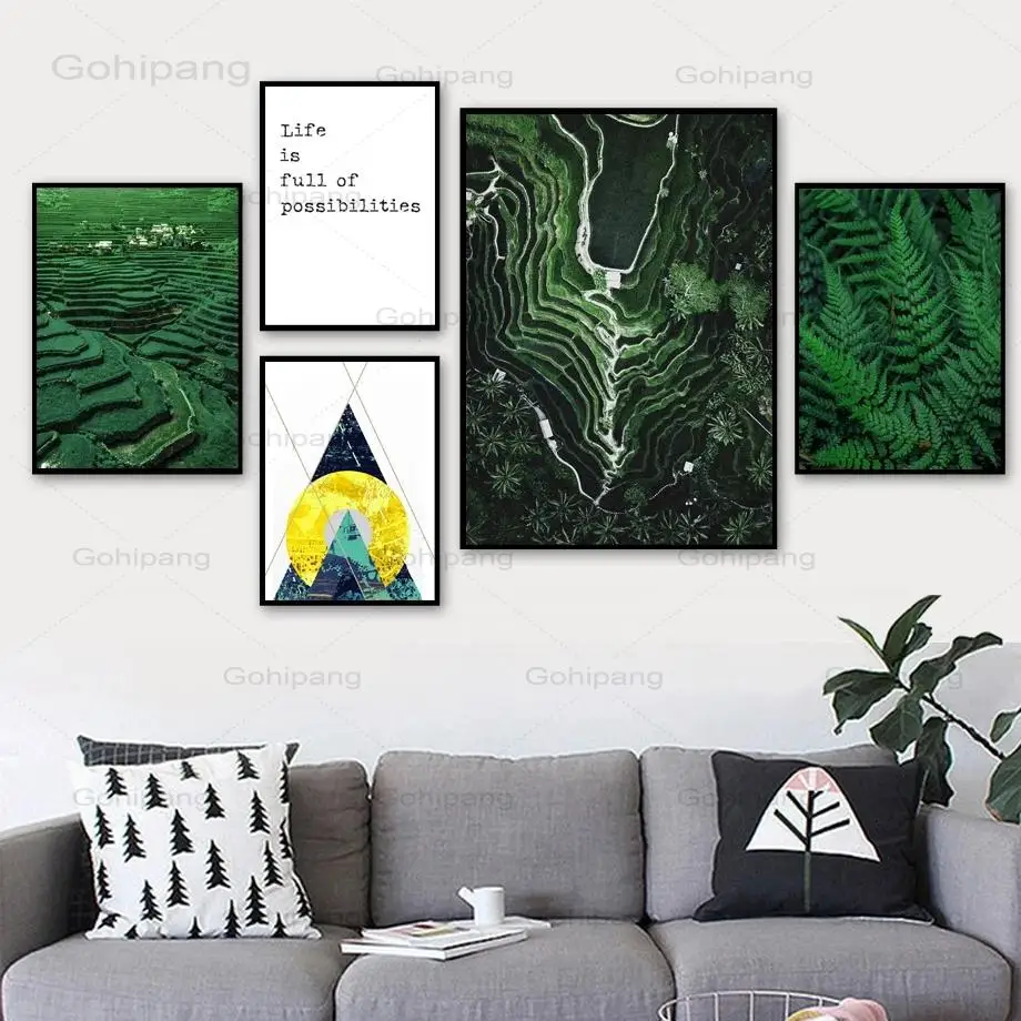 Настенные художественные картины на холсте Рисовые Террасы полевые листья цитаты скандинавские плакаты и принты пейзаж настенные картинки для декора гостиной