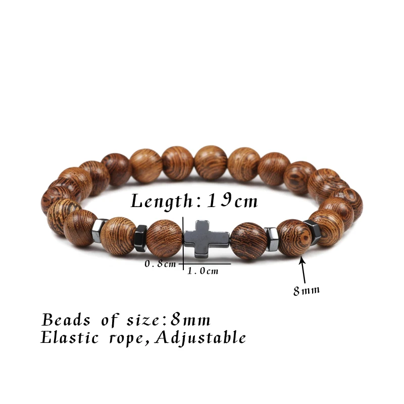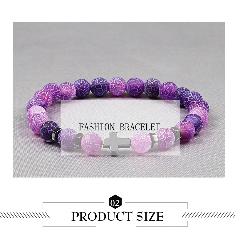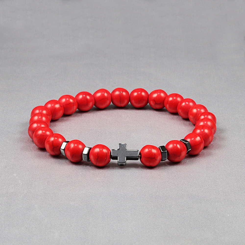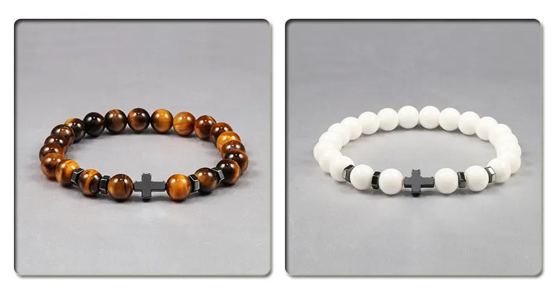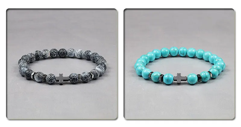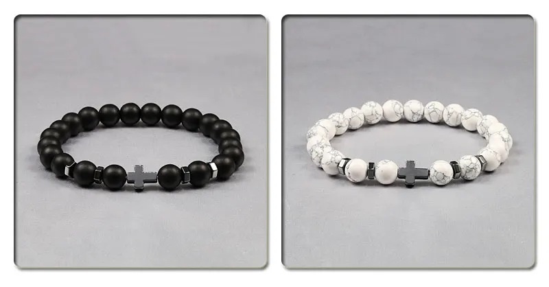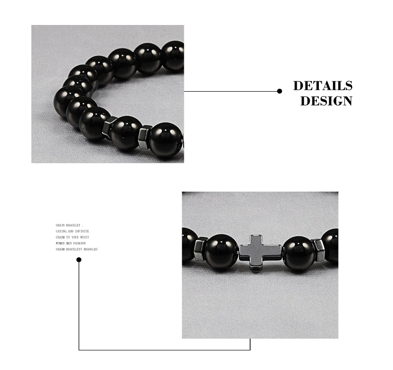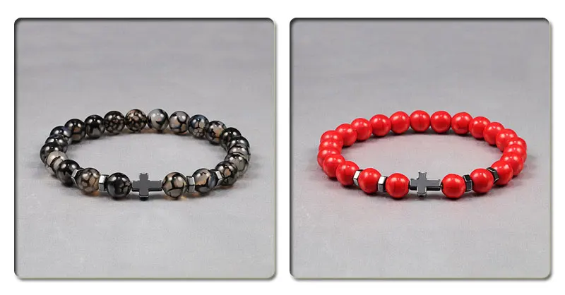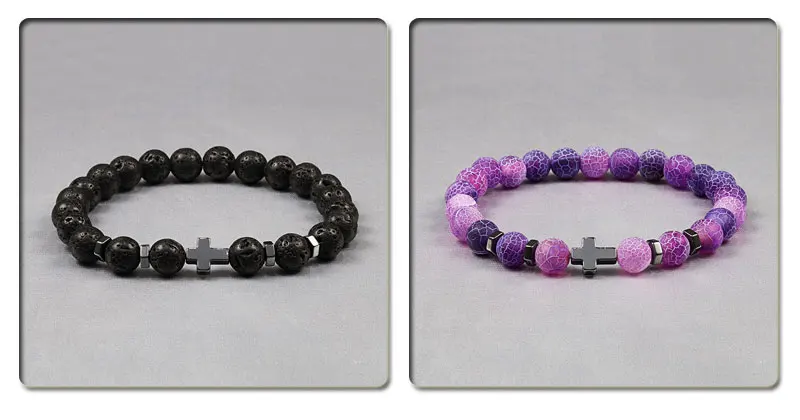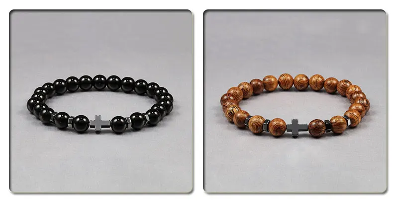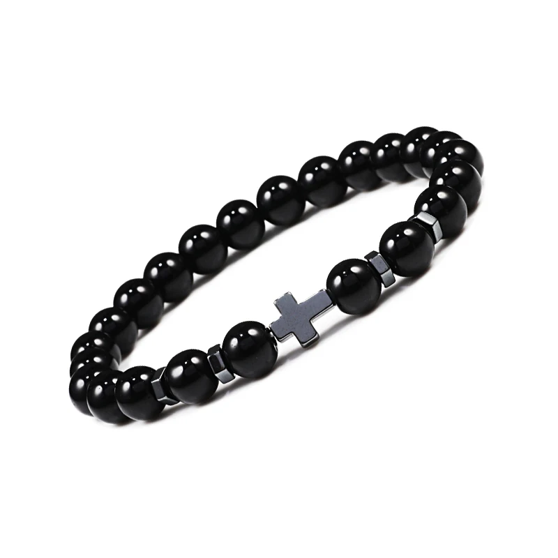 Очарование гематит крест природа камень оникс из бусин диаметром 8 мм с Браслеты браслеты Для женщин мужчины для медитации и молитвы Strand ювелирные браслеты
