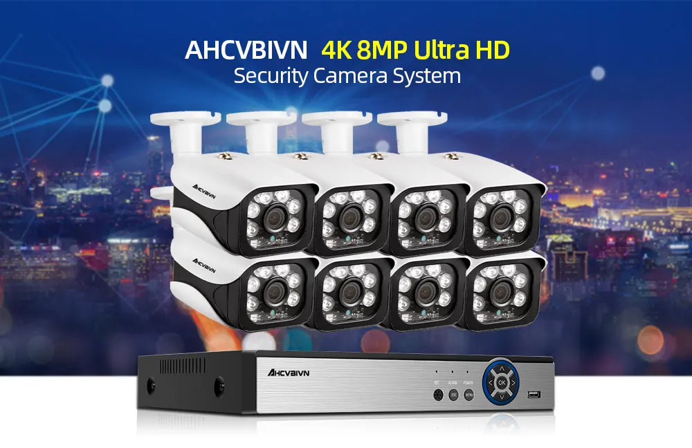 8-канальная система видеонаблюдения, проводная система 4K DVR, 8,0 МП, ИК, комнатная и наружная Водонепроницаемая цилиндрическая AHD-камера безопасности, комплект видеонаблюдения P2P