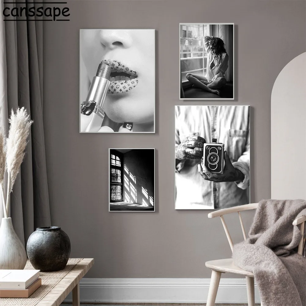Картина на стену курительная женщина винтажная фотокамера Холст плакат сексуальные губы девушки художественные принты модные современные настенные картины Домашний декор