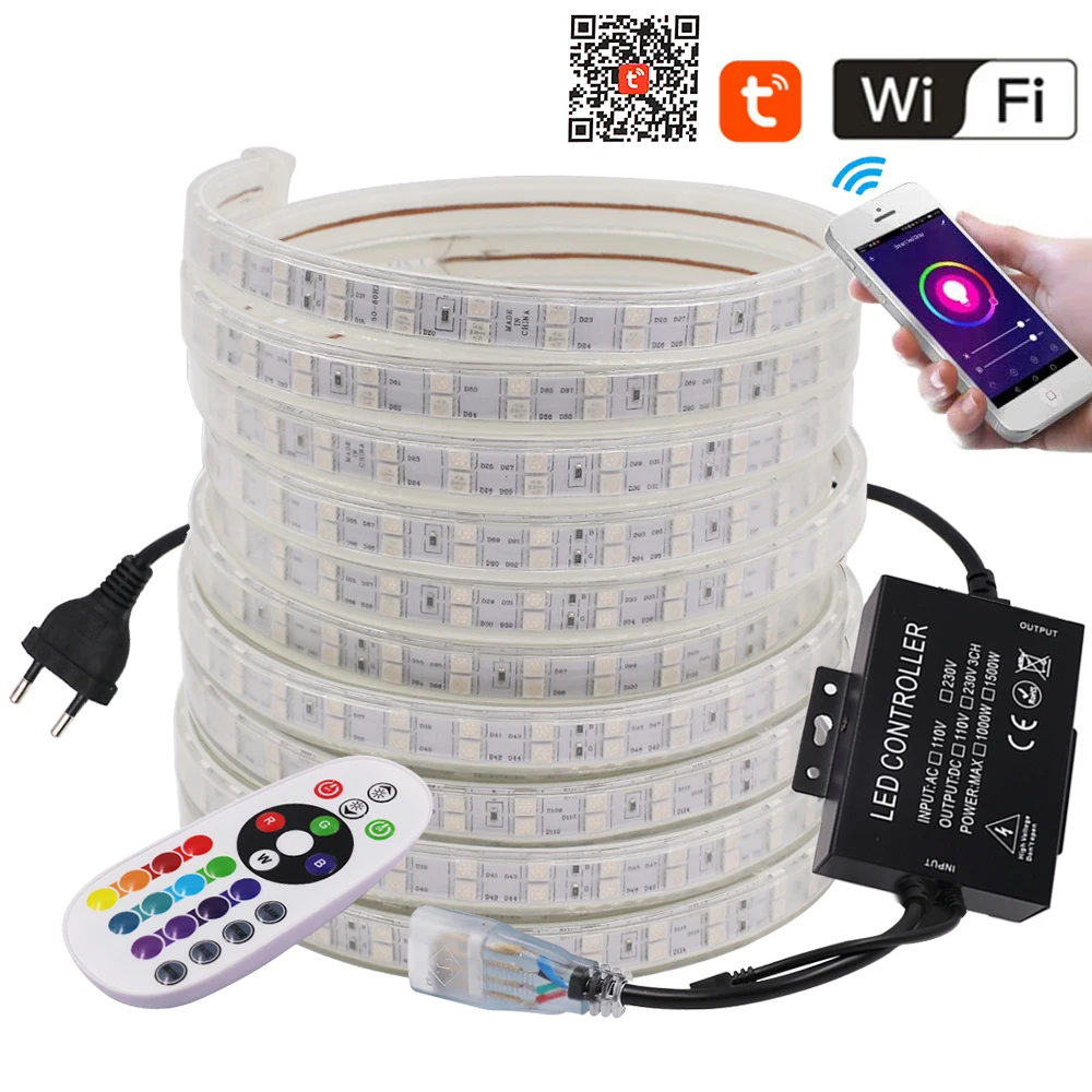Светодиодная ленсветильник 220 В, Wi-Fi, RGB, SMD5050, 120 светодиодовм, двухрядная лента 1500 Вт, пульт дистанционного управления, гибкая светодиодная лента, водонепроницаемая лента