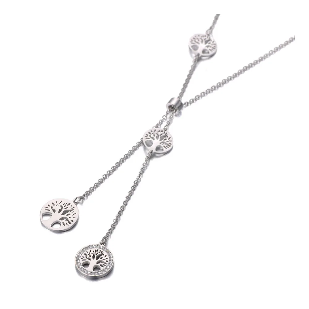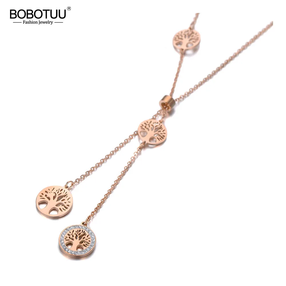 BOBOTUU богемное ожерелье из нержавеющей стали с фианитами и кристаллами в виде растений и дерева ожерелья для женщин модное Очаровательное ожерелье с подвеской BN19198