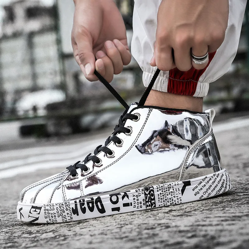 Женские кроссовки на высокой платформе, серебристые или золотистые повседневные кожаные кроссовки с граффити, для влюбленных, зима 2021