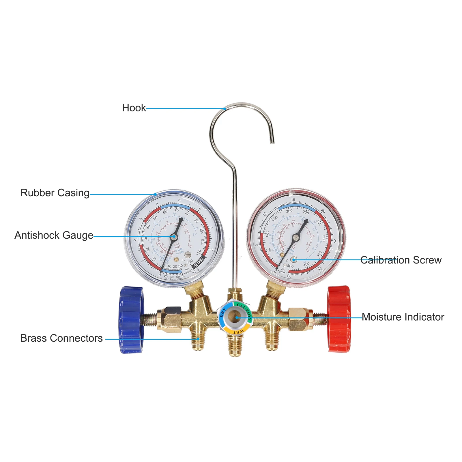 Набор для охлаждения, манометр коллектора хладагента, инструменты для кондиционирования воздуха со шлангом и крюком для R12, rr404a, R134A