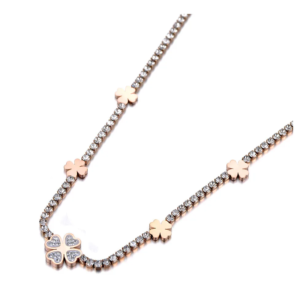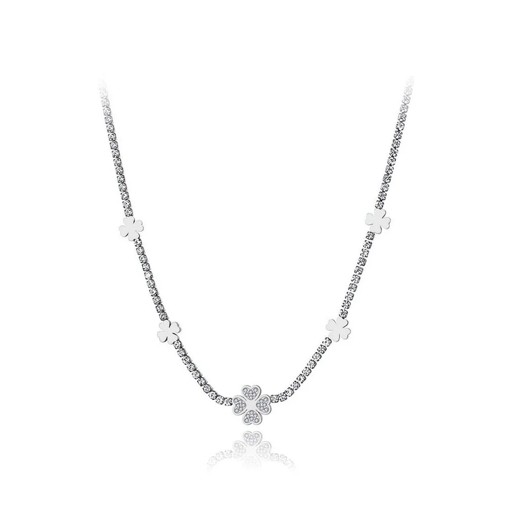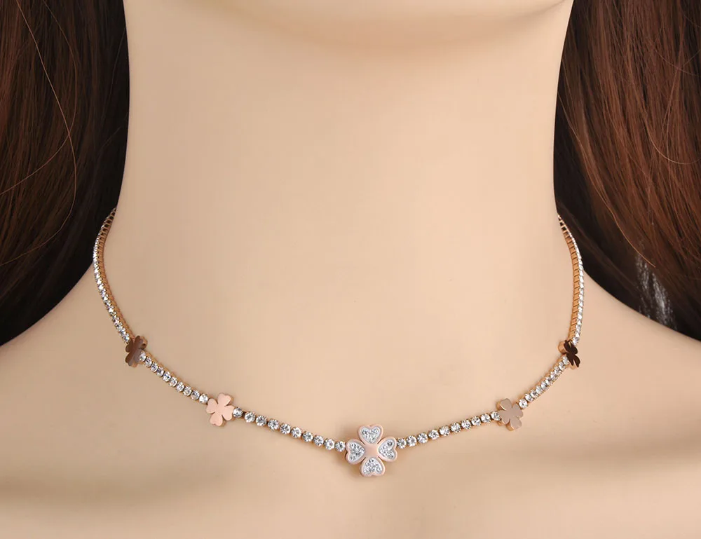 BOBOTUU сверкающие Нержавеющая Сталь CZ Кристалл растения Цветок колье для женщин Мода Полный Стразы ожерелье BN19189