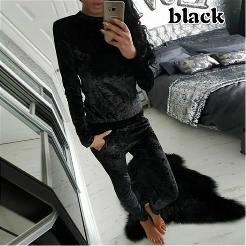 2021; Сезон осень-зима; Модные женские спортивный костюм бархатная ...