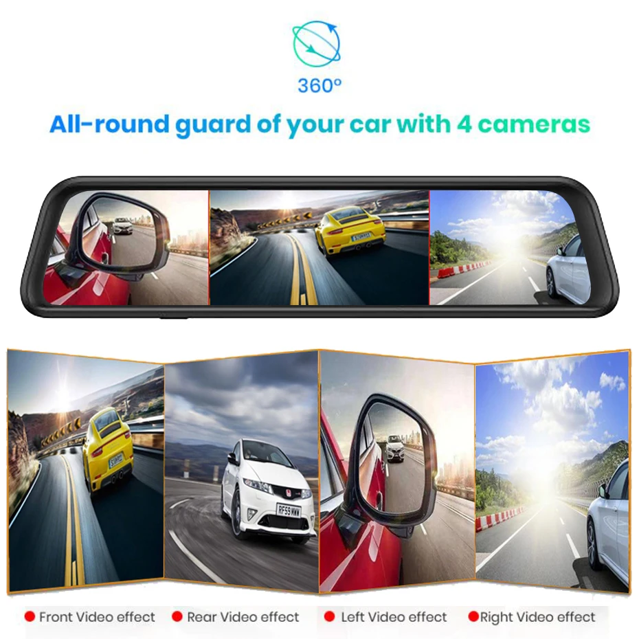 Зеркало заднего вида WHEXUNE, 4G видеорегистратор, 12 дюймов, Android, ADAS, Wi-Fi, 4 камеры, автомобильный видеорегистратор