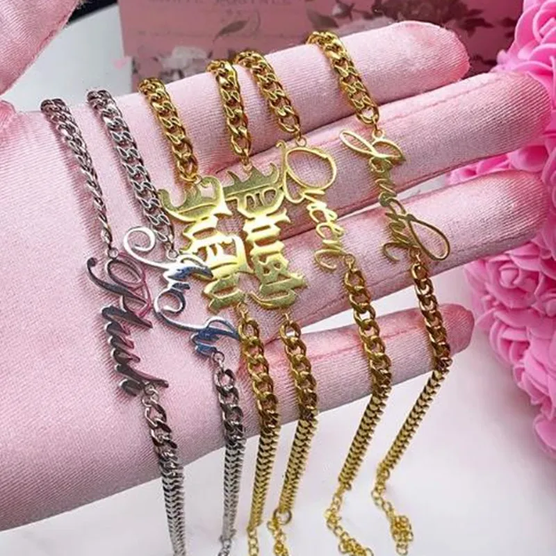 Ножной браслет DOREMI с именем из нержавеющей стали, 5 мм, кубински...