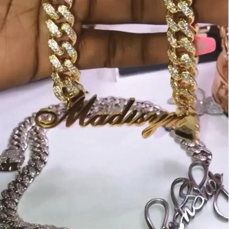 Льдом кубинский Персонализированные Пользовательское имя кулон ожерелье по индивидуальному заказу Курсив табличка ожерелье женские туфли-лодочки на высоком каблуке ручной работы Рождественский подарок