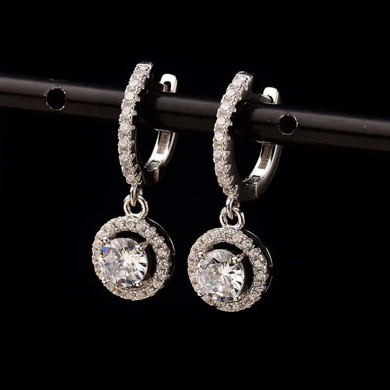 Серьги-подвески 0,5-1ct карат муассанит для женщин классические круглые серьги из стерлингового серебра пробы с платиновым покрытием ювелирные изделия