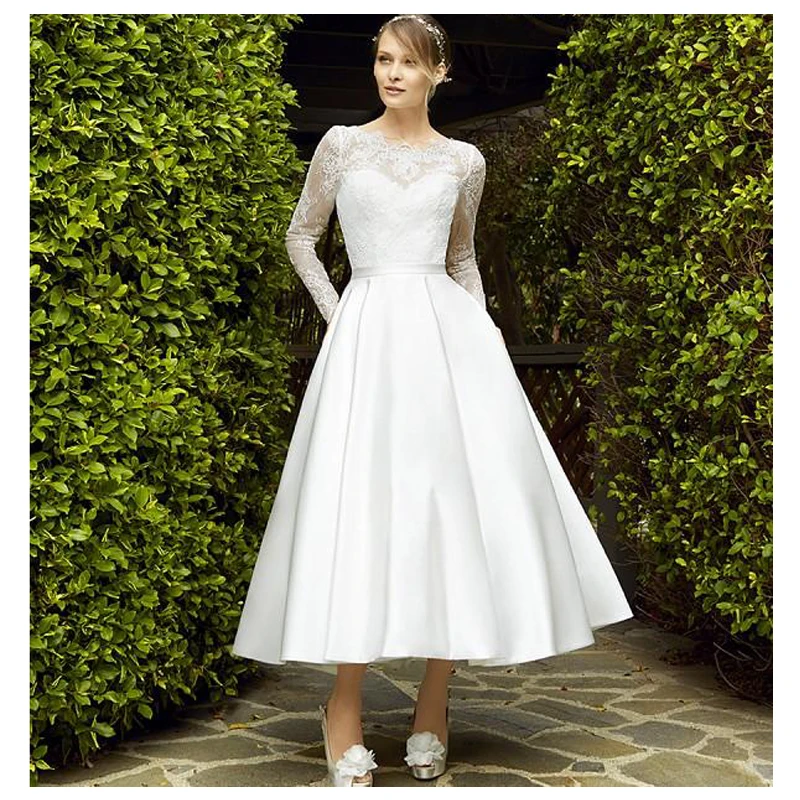 Женское свадебное платье с длинным рукавом, белое кружевное платье ...
