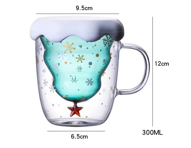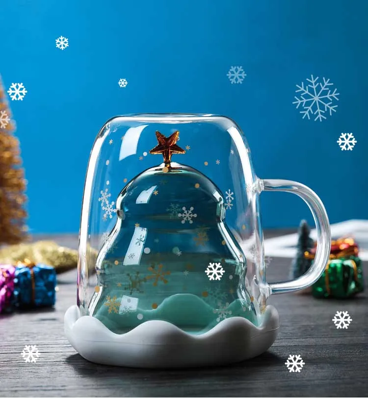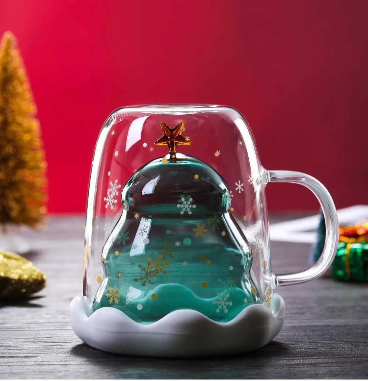 Двухслойная стеклянная чашка с защитой от ожогов, рождественская елка, кофейная кружка, термоизоляция, чашка для завтрака и молока, детский подарок, 300 мл