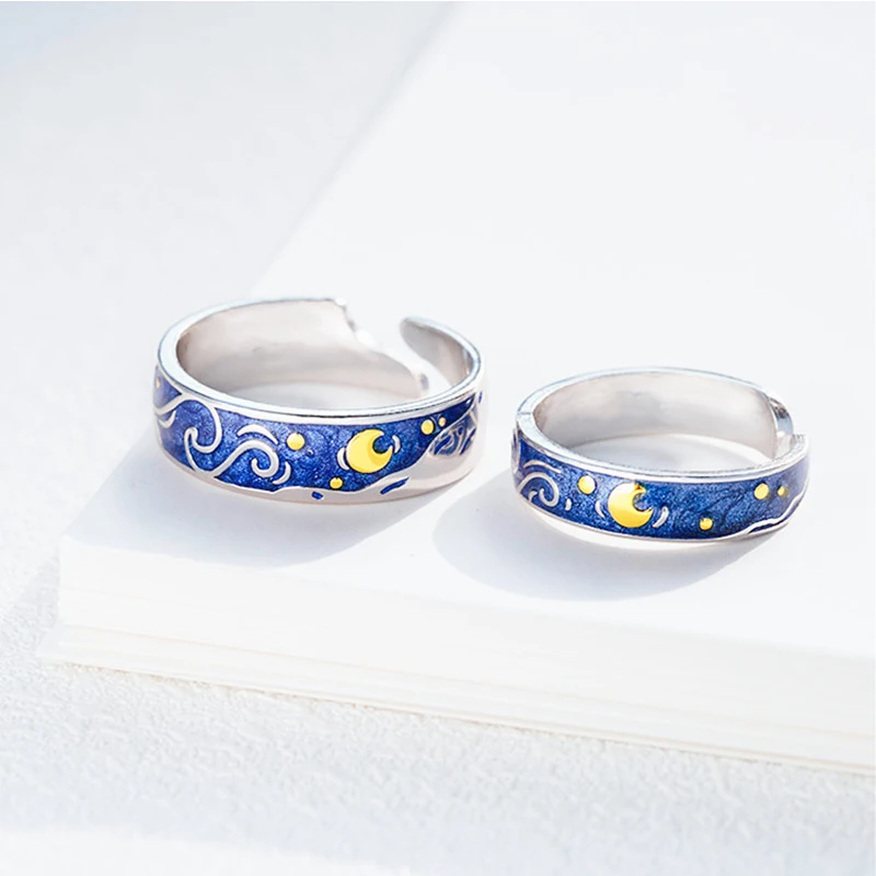 Кольца для влюбленных с покрытием серебром S925, Ван Гог, звездное ...