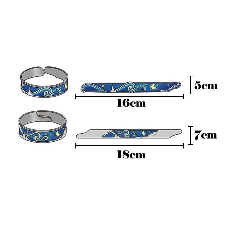 Антиаллергенные парные кольца Ван Гога с Луной и звёздной ночью, юв...