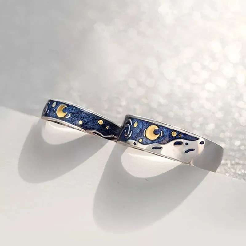 Регулируемые кольца Van Gogh с покрытием звездного неба для влюблен...