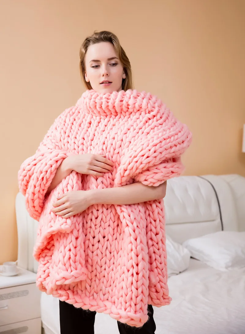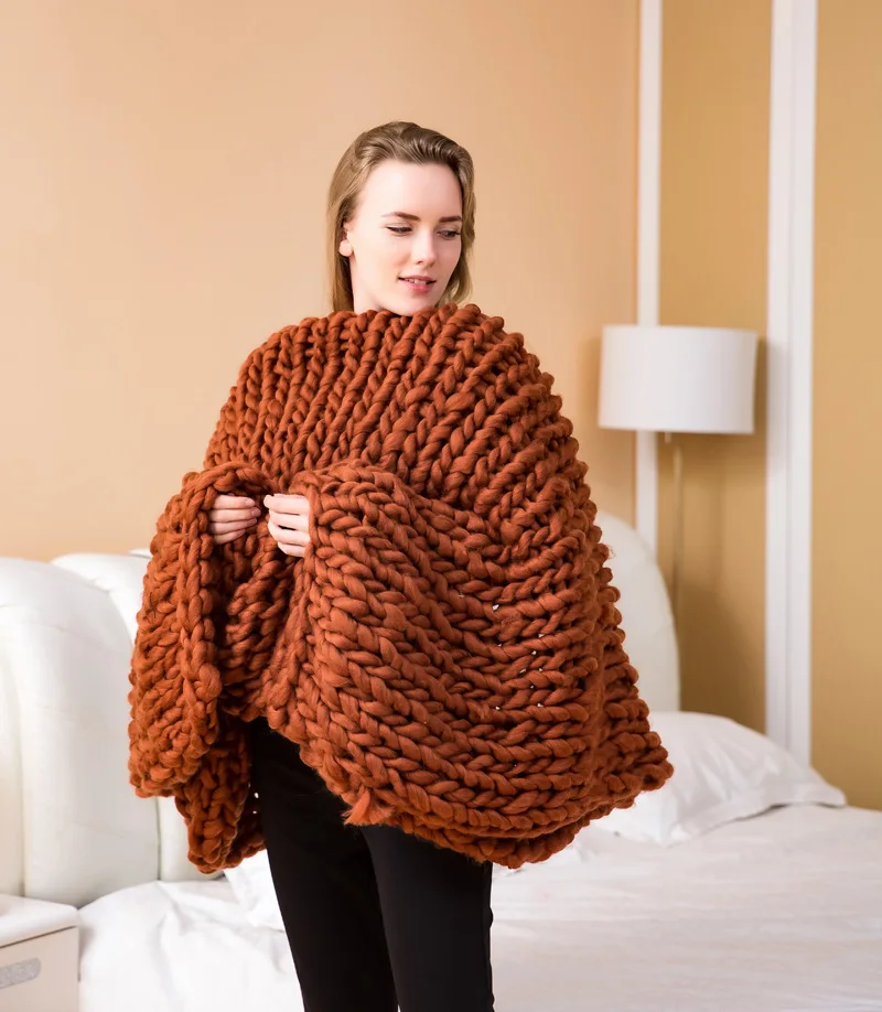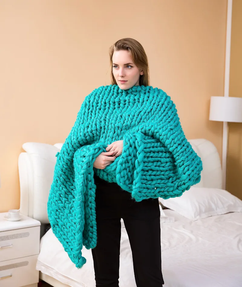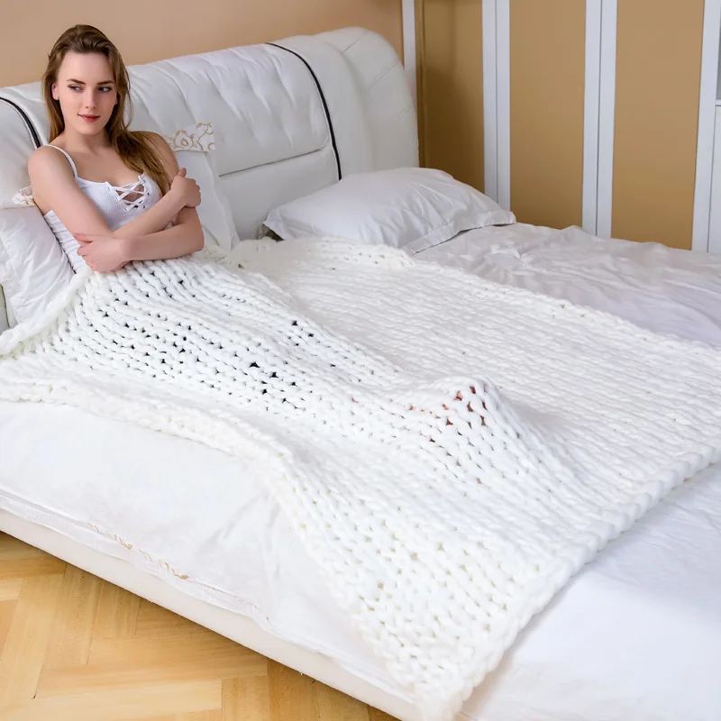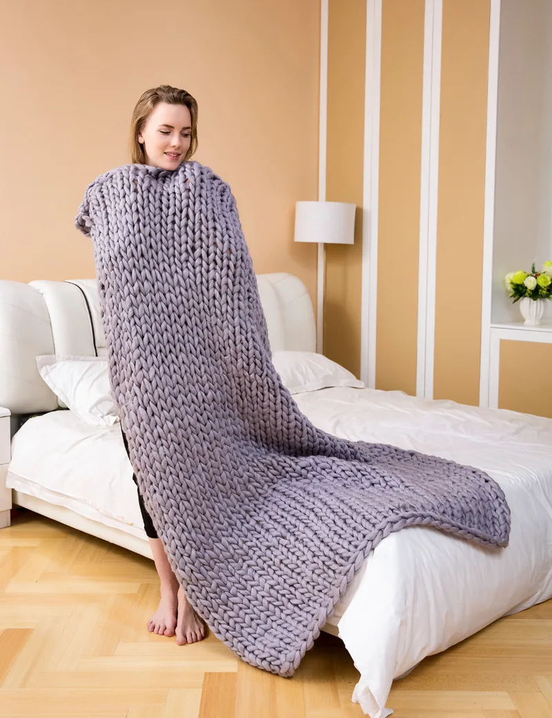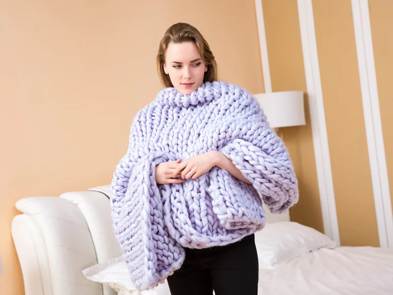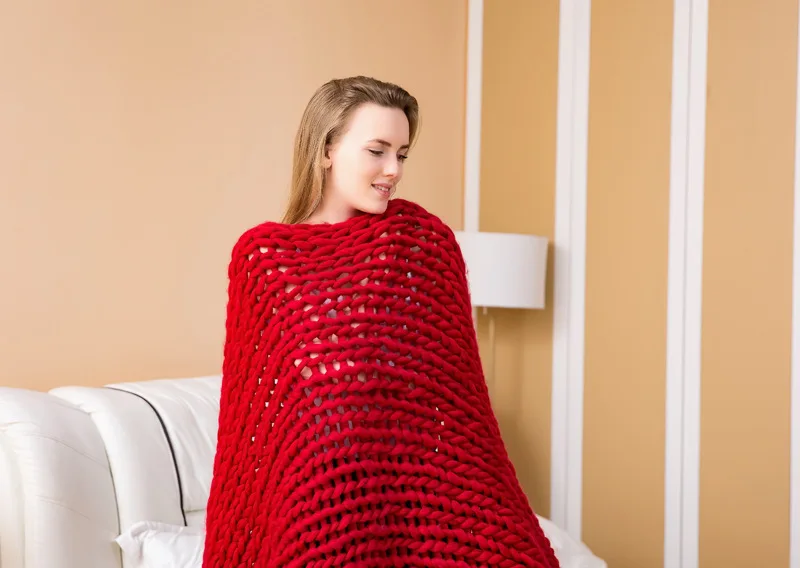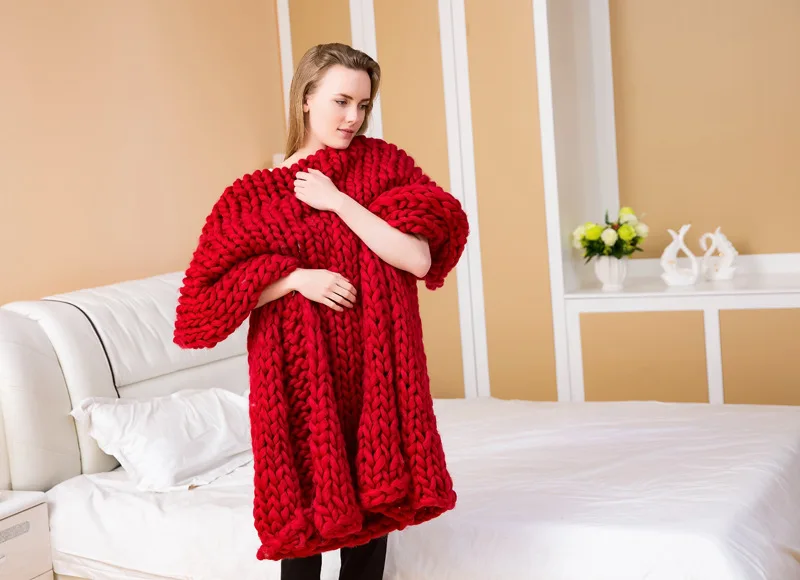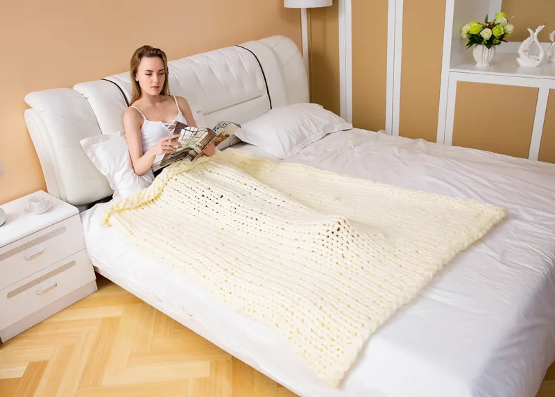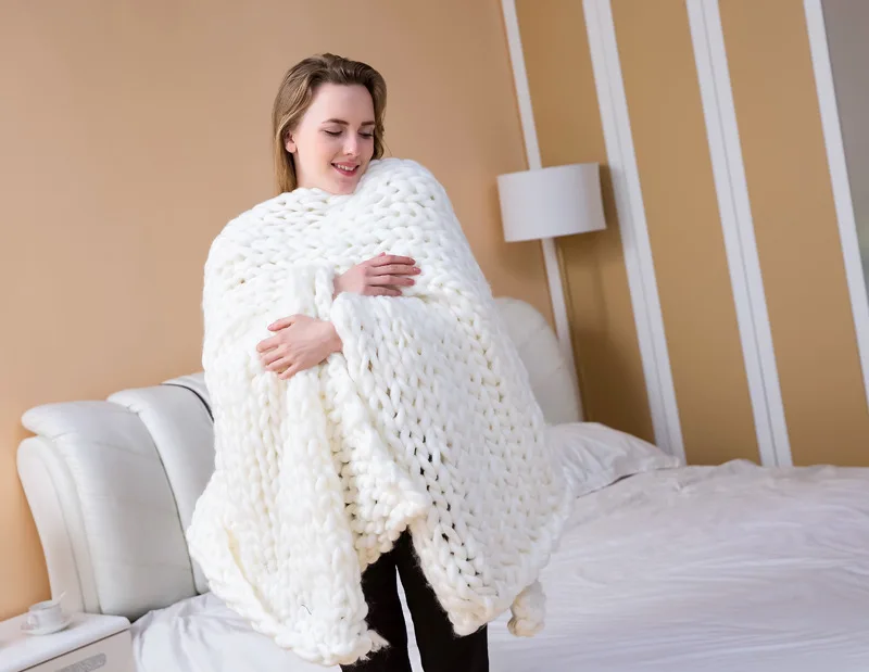 Скандинавская Мода Ins, ручная вязка, полиэстер, объемные зимние мягкие теплые вязаные одеяла, 100% акрил, коврики, Декор