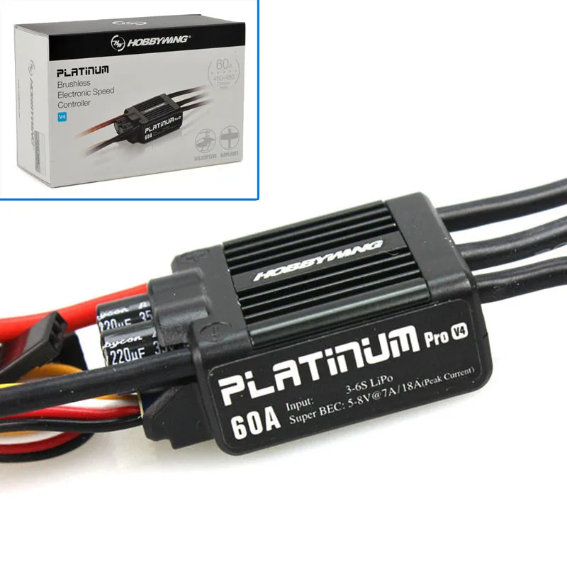 Оригинальный HobbyWing Platinum PRO V4 60A ESC (3S-6S) для вертолета класса 450-480 (Пропеллер: 325-360 мм)