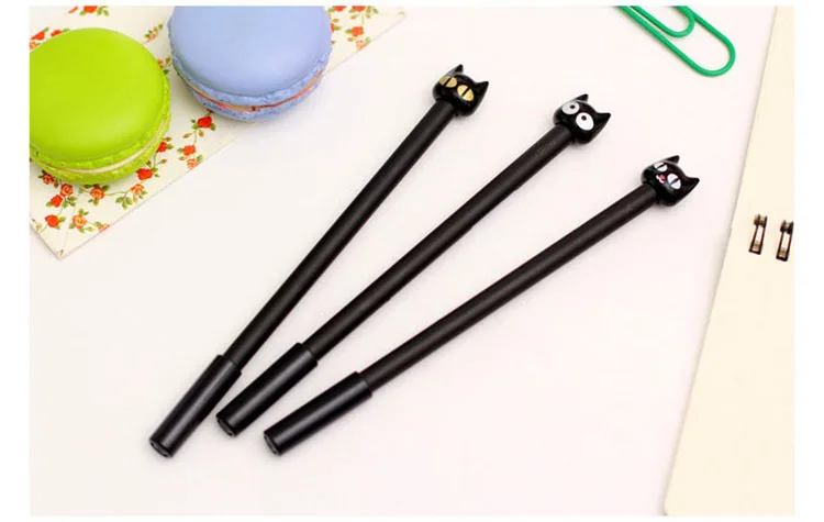Ручка гелевая с милым маленьким черным котом, креативная черная ручка с мультяшным котом для начальной школы, Канцтовары, милые школьные принадлежности