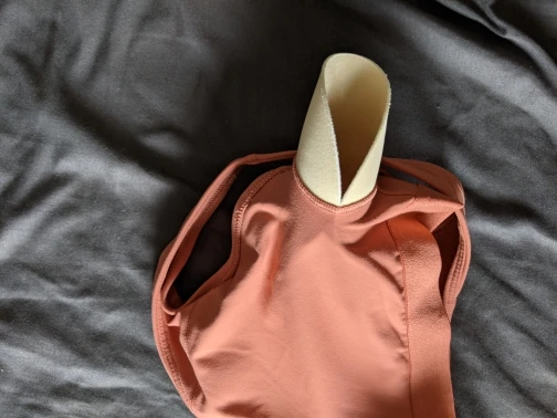Это хороший материал и выглядит мило, но недостаточно поддерживающий, не сможет носить его в тренажерном зале... Может быть, просто как топ для повседневной деятельности, но декольте довольно показательно.