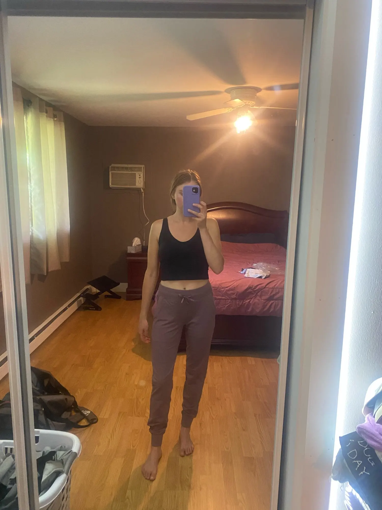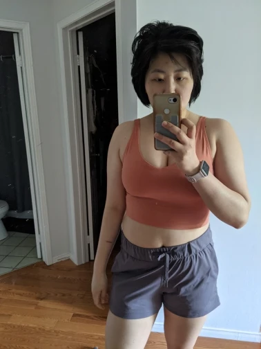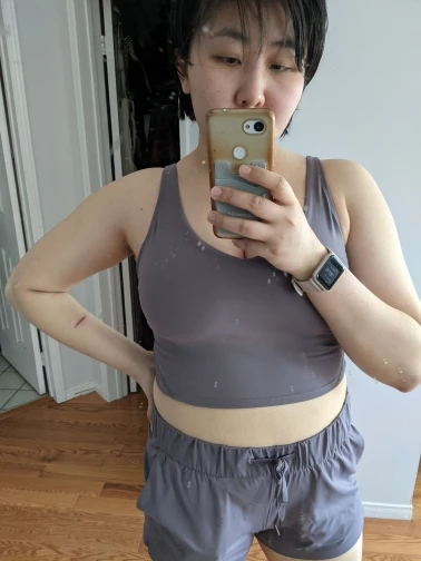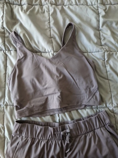 Я получил xs, и у меня есть 4 в танке align. Я бы сказал, что он был немного плотнее, чем у меня, но он такой милый и такой замечательный. Серый цвет, безусловно, может отличаться от фиолетового.