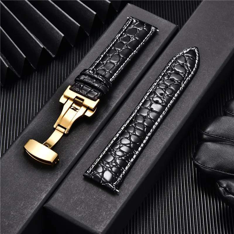 Ремешок мужской кожаный с автоматической застежкой, люксовый дизайнерский браслет из нержавеющей стали с узором под кожу крокодила, 18 мм 20 мм 22 мм 24 мм