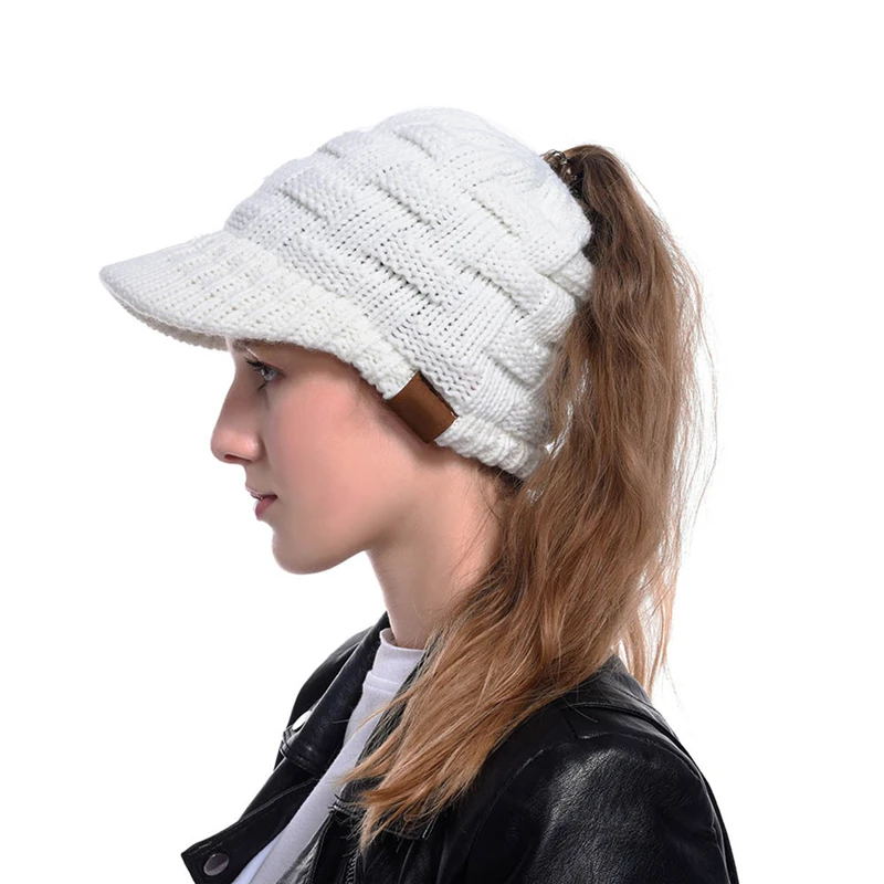 Для женщин ребристая Трикотажная Шапочка хвост зимний теплый вязаны...
