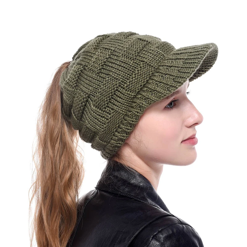 Зимняя женская вязаная бейсбольная кепка для девочек, теплая Повсед...